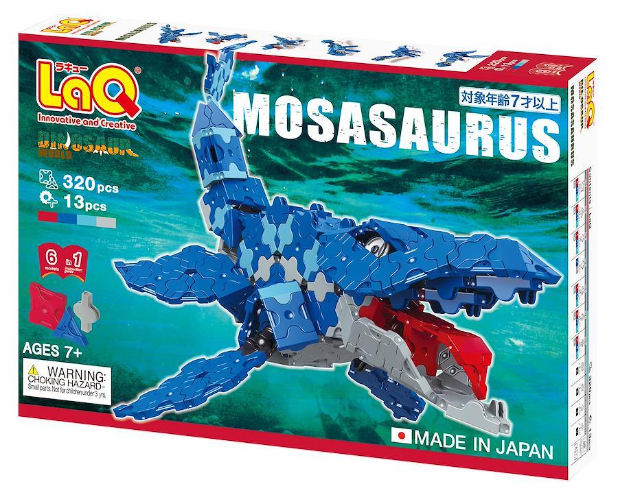 ダイナソーワールドに人気恐竜モササウルスが登場!メインの「モササウルス」はチェーンテクニックとボールジョイントパーツを使った可動が魅力! 口やヒレを動かせます。【つくれるモデル】は6種類! サイカニア、アーケオプテリクス、ブロントサウルス、アロサウルス、プレシオサウルス、モササウルス■「LaQ(ラキュー)」は四角と三角の基本パーツと5種類のジョイントパーツをつなげて、色々なものが作れる知育玩具です。パーツを組み立てる動作は、右脳と左脳の両方を刺激し、想像力や思考力の発達を促します。国内・海外で多くの賞を受賞している【日本製のブロック】です。