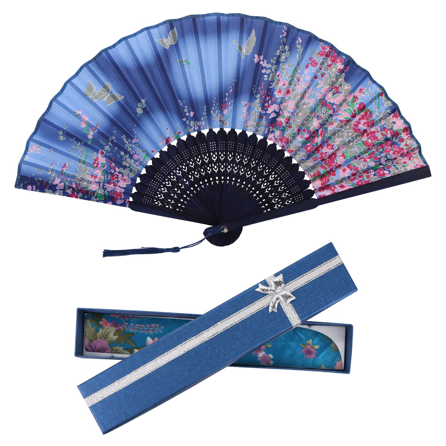 [YOVOY] 扇子 レディース おしゃれ シルク 和風扇子 大きい 短地扇子 女性 花柄 プレゼント 花火大会 浴衣 着物 和装小物 お祭り 猛暑対策 ギフト袋と箱付き 3点セット