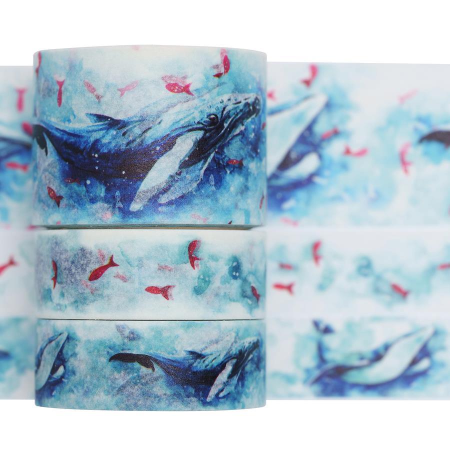 YUBBAEX 3巻 マスキングテープ 和風印刷 超かわいいスタイル 薄いです プレゼント包装、DIY工芸品、ノートの装飾に使える (雲の魚)