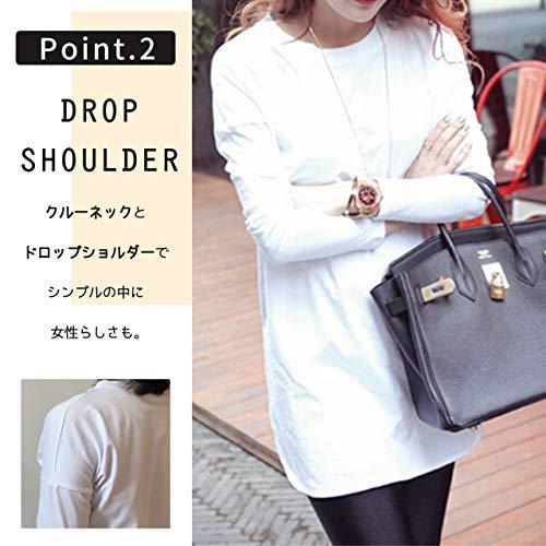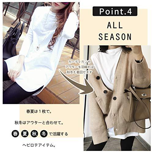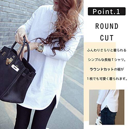 ふんわりさらりと着られるシンプルな長袖Tシャツ。裾のラウンドカットデザインにより1枚でも可愛く着られます。★着丈:ヒップ下あたり ★袖丈:9分袖 ★首元:クルーネック ★裾:ラウンドカット ★素材:薄手&しっかり生地 ★肌ざわり:良好 ★体型カバー裾のラウンドカットデザインにより、女性らしく上品さのある印象に。さらに、丈感が長めであることから体のラインも少し出てくれて、脚長効果もあります。春 秋 は1枚で、もしくはカーディガン、ジャケット、トレンチコート、テロンチ、パーカー、と合わせて、冬はアウターも合わせて、ロングシーズン活躍します。ボトムスはデニムやスキニー、ショートパンツなどと合わせてもいいですし、アクセサリーも合わせることでよりきれいめコーデが楽しめます。少しゆとりのあるTシャツのためアクティブウェアとしても使いやすく、ヨガ、ダンス、バレエ、ジム、フィットネス、ランニング、ウォーキング、ハイキング、山登り、その他スポーツ、アウトドアにぴったりです。また、ルームウェア、部屋着、寝巻きとしてもお使いいただけます。