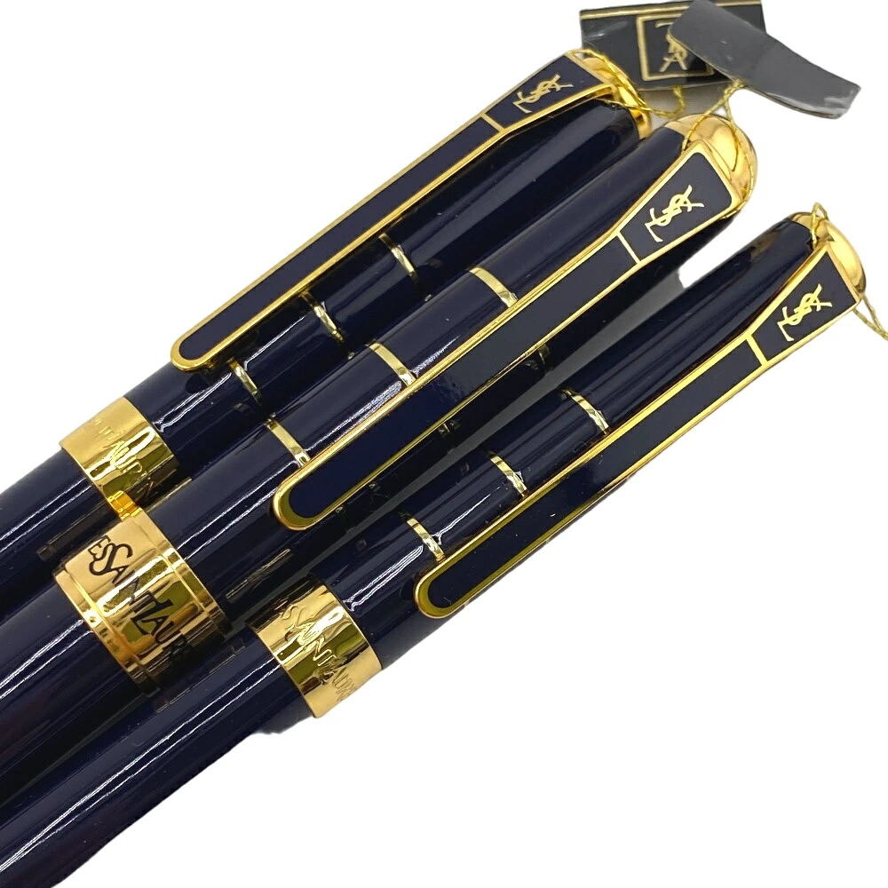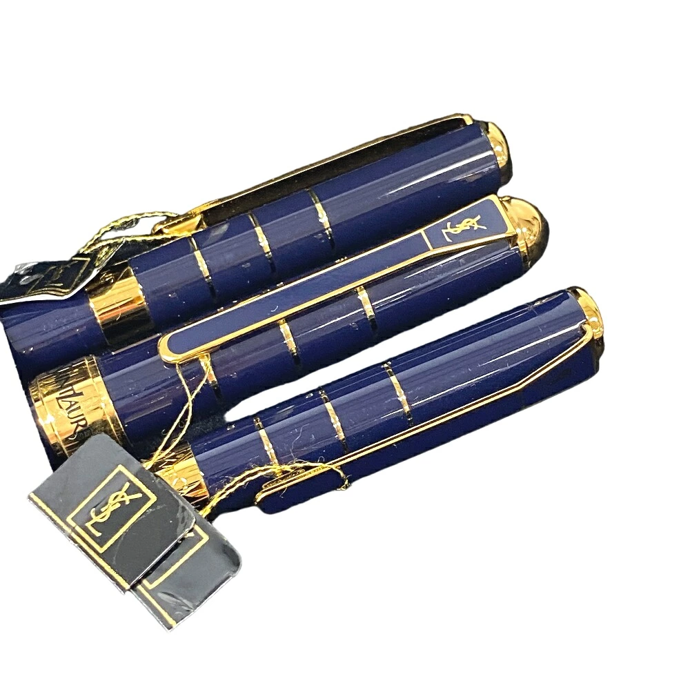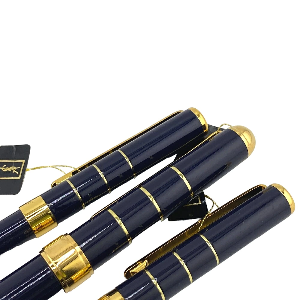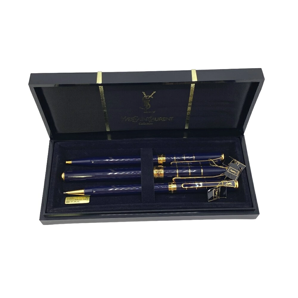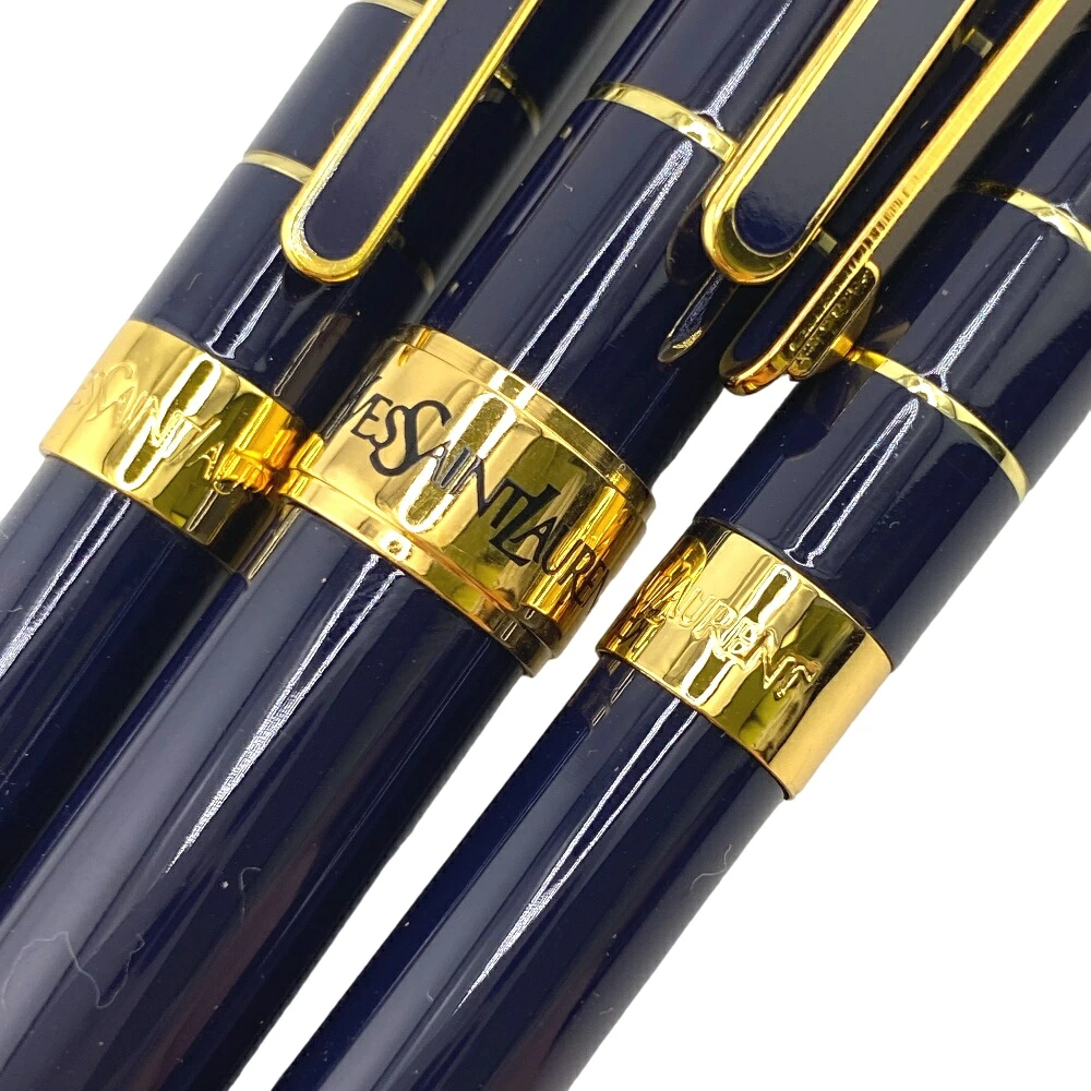 YVES SAINT LAURENT 3-Piece Set (Ballpoint Pen, Mechanical Pencil, and Fountain Pen) in Navy Blue, Made in Japan, Unisex