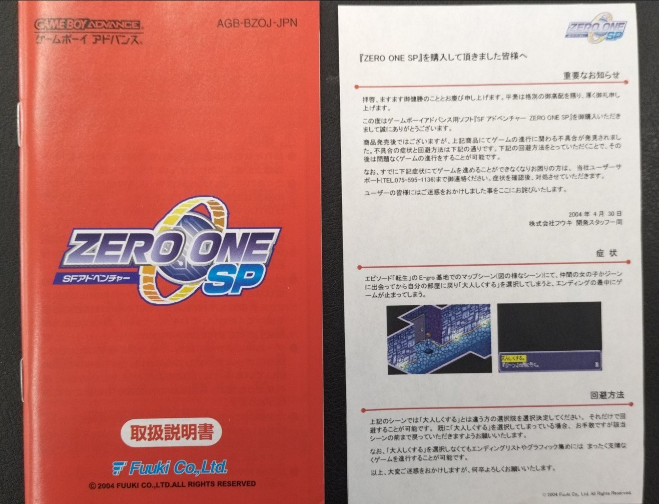 ZERO ONE SP AGB-P-BZ0J フウキ ゲームボーイアドバンスソフト フウキAGB-P-BZ0JZERO ONE SP