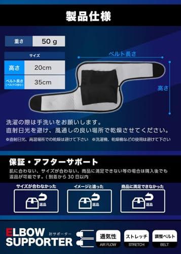 セット内容:ひじサポーター 1個 対応サイズ:ひじ上周囲20-29cm対応(調整可能) 商品サイズ:高さ20cm ベルト長さ35cm 重さ:約50g お手入れ方法:洗濯の際は手洗いをお願いします。 直射日光を避け、風通しの良い場所で乾燥させて下さい。 ※洗濯機、乾燥機などの使用は避けて下さい。 ※直射日光、高温場所での乾燥は避けて下さい。 ご購入後サイズが合わないなどございましたらお気軽にお問い合わせください。 (#lf)(#lf)(#lf)商品購入前に、ストア紹介ページをご確認ください。