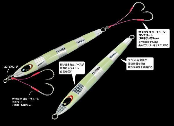 スロージギングの基本動作である魚の捕食レンジを探り当てフォールで見せる一連の動作の中で、フレアはレジンを細かく刻むことを最重点項目に置き開発したスティックタイプのモデルだ。魚がどのレンジで反応しどのレンジで捕食しているのかを探るため鋭角に削り込んだノーズがジャーク時の応答性を高め、細かいピッチの刻みこみでも左右へスライドし自走を促す。そのため極めて遊泳力のある青物等においても大振りなジャーキングを行えば大きなスライドアクションを発生させ熱烈にアピールすることができる。つまりすろーだけではなくハイピッチまで対応できる幅の広さを併せ持つと細や細かな平打ちフォールを演出し喰わせのスイッチを入れる。細かな刻みとスライドという二面性をもつフレアの性能を引き出せた時、魚はこのジグにためらいなく喰らいついてくるであろう。