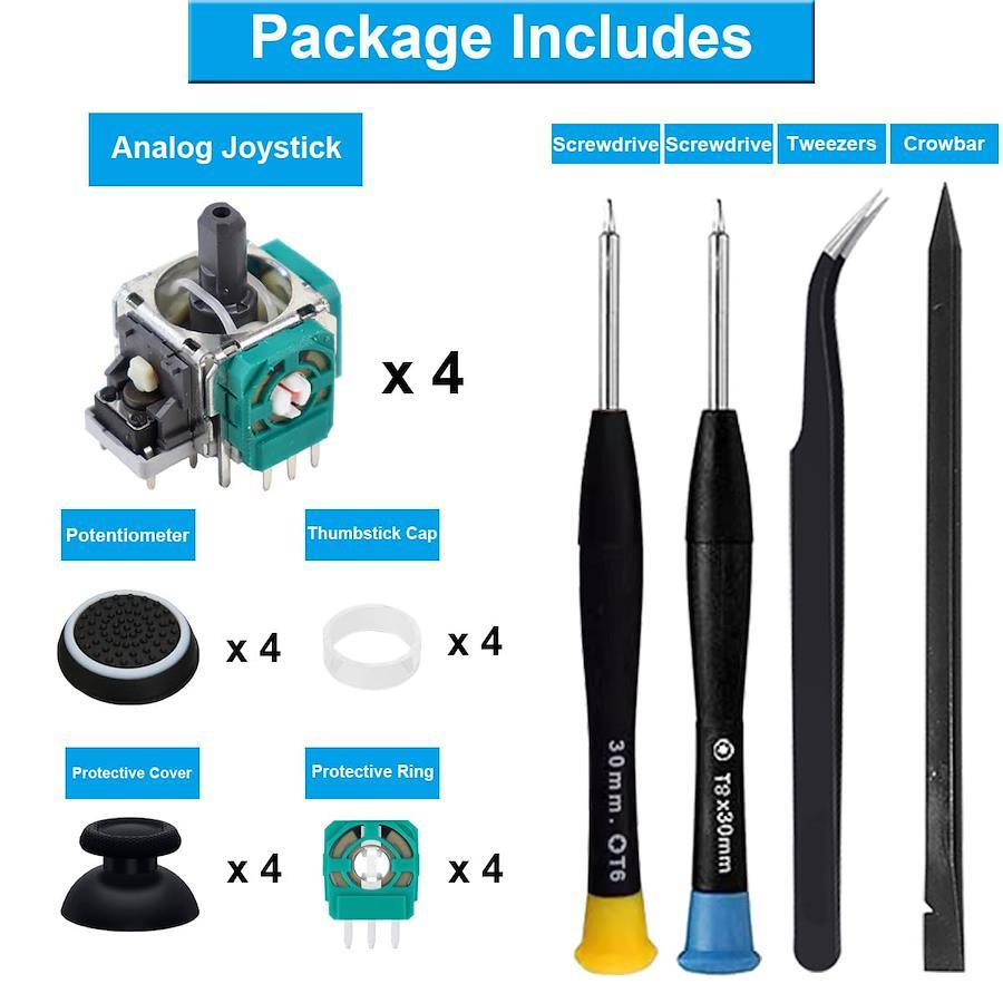 仕様 ◆互換性のあるモデル: アナログジョイスティック交換用 for Xbox One用 for Xbox One S用 for Xbox One X用 for Xbox Series S用 for Xbox one Series X用 for Xbox Elite Series 1 コントローラのみ(for PS4用、for PS5用、Switch Pro用には適合しません。ご購入前にお使いのモデルをご確認ください。) 特徴 ◆3Dアナログジョイスティック:高品質の3Dアナログジョイスティックの交換は、効果的に対応for Xbox Oneコントローラの漂流、磨耗、破損、死角、デッドゾーン、クリックしない、中心でない、敏感でない問題を解決するのに役立ちます。 ◆10K3Ωポテンショメーター:良好な抵抗制御能力、完璧にアナログジョイスティックのドリフト、クリック感なし、鈍感などの一連の問題を解決し、対応for Xbox Oneコントローラのためにあなたに新しい経験をもたらす サムスティック・キャップ:高品質のABS素材で作られたサムスティック・キャップは、360°のスライドをサポートし、デッドアングルをなくし、あなたの対応 for Xbox Oneコントローラーをよりスムーズにします。 ◆ジョイスティック保護カバー:シリコーン製の滑り止め付きジョイスティック保護カバーで、プレイ中のスリップミスを防ぎます。 ◆保護リング:超薄型のサムスティック保護リングはプレイ中の磨耗を防ぎ、対応for Xbox Oneコントローラーの寿命を延ばします。 ご注意 ◆製品キットには取り付けに必要な付属品が含まれていますが、初心者の方は対応for Xbox Oneコントローラー用ジョイスティックの交換を専門家に依頼することをお勧めします。https://www.youtube.com/watch?v=Uoxz0oHX9TE。 パッケージに含まれるもの ◆4 x 3Dアナログジョイスティック ◆4 x 10K3Ωポテンショメータ ◆4 x サムスティックキャップ ◆4 x ジョイスティック保護カバー ◆4 x 保護リング ◆T8ドライバー1本 ◆T6ドライバー1本 ◆バール1本 ◆ピンセット1本 ★互換性のあるモデル: for Xbox One用アナログジョイスティック交換 for Xbox One S用 for Xbox One X用 for Xbox Series S用 for Xbox one Series X用 for Xbox Elite Series 1 コントローラ専用(for PS4用、for PS5用、Switch Pro用には適合しません。ご購入前にお使いのモデルをご確認ください。) ★4×3Dアナログジョイスティック:4つの高品質3Dアナログジョイスティック交換は、対応for PS5コントローラのドリフト、磨耗、破損、死角、デッドゾーン、クリック感なし、センタリングされていない、敏感でないなどの問題を効果的に解決することができます。アナログジョイスティックの交換は、良好な高温および低温耐性、耐衝撃性、耐久性と高品質の金属、ABSメタルで作られています。 ★4 x 10K3Ωポテンショメーター:10K3Ωポテンショメーターは、対応for Xbox Oneコントローラー用に特別に設計されています。良好な抵抗制御能力で、アナログジョイスティックのドリフト、クリック感なし、鈍感などの一連の問題を完璧に解決し、対応for Xbox Oneコントローラーに新しい体験をもたらします。 ★4 x Thumbstick Cap: 高品質なABS素材を使用したThumbstick Capは、360°のスライドに対応し、デッドアングルがなく、for Xbox Oneコントローラーをよりスムーズに使用できます。 ★4 x 保護リング: 超薄型サムスティック保護リングは、プレイ中の摩耗や損傷を回避し、対応for Xbox Oneコントローラの寿命を延長します。 ★取り付けの提案: 製品キットには取り付けに必要な付属品が含まれていますが、初心者の方は、対応for Xbox One コントローラ用ジョイスティックの交換を専門家に依頼することをお勧めします。https://www.youtube.com/watch?v=Uoxz0oHX9TE。 ★パッケージ内容:3Dアナログジョイスティック×4、10K3Ωポテンショメーター×4、サムスティックキャップ×4、ジョイスティック保護カバー×4、保護リング×4、T8ドライバー×1、T6ドライバー×1、バール×1、ピンセット×1