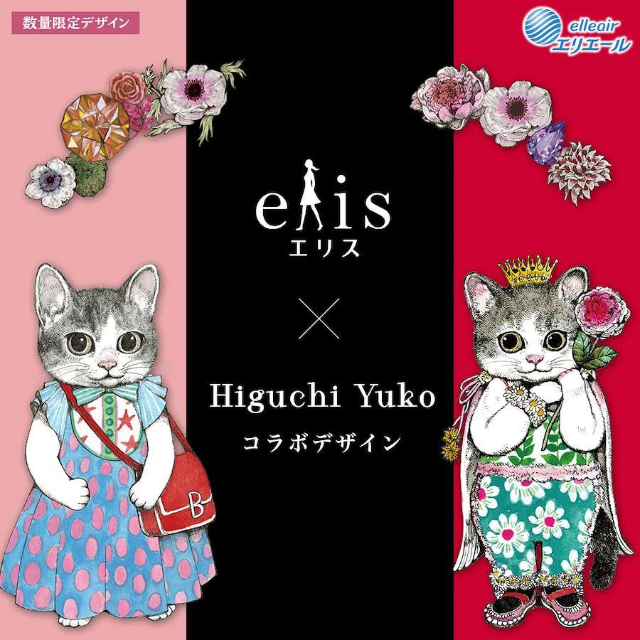 エリスブランドメッセージ: だれかではなく、あなたのそばに。 ひとの数だけ、くらしや価値観があるように。 生理に対する想いや悩みは、ひとりひとり違うから。 エリスは、ほかのだれかではない、あなたの気持ちを大切に。 あなたが望む生理の過ごし方を支えていきたい。 繊細な肌に直接ふれ、こころとからだに向き合うからこそ、 これまでのあたり前にしばられない発想で ひとりひとりと生理の関係を、もっとここちよく。 あなたがあなたらしくいられるように。 今日もエリスが、そばにいます。 エリス コンパクトガードとエリス 素肌のきもちで、独特の世界観で支持されている絵本作家「Higuchi Yuko(ヒグチユウコ)」さんとコラボレーション 5時間べたつきにくい:経血をたっぷり吸収しても、5時間べたつきにくい※1。 たっぷり2倍※1吸収:スリムなのに超吸収ポリマーがぎっしり詰まっているので、普通のナプキンの2倍※1吸収。 わずか1.9mmの極薄シート:個包装もスリムで持ち運び時もコンパクト。 動いてもしっかり固定:ショーツ接着部分の面積※2UPで動いてもモレ安心。