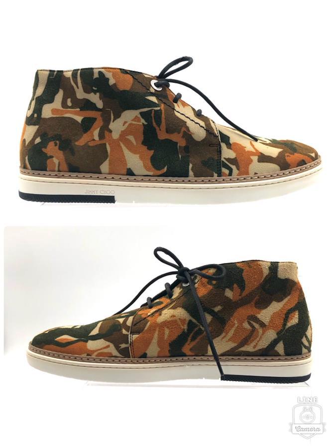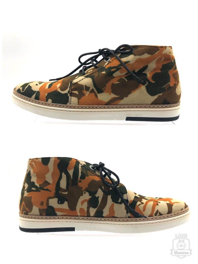 ■商品概要JIMMY CHOO ジミーチュウチャカブーツ ショートブーツ デザートブーツ ハイカットレザースニーカー山羊革 レザー スエードカモフラ 迷彩柄サイズ42(27cm)イタリア製メンズブラック×ベージュ×ブラウンラバーソール131DRAKE.CPD箱あり