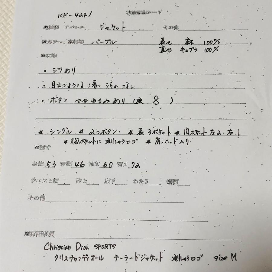■商品概要Christian Dior クリスチャンディオール胸刺しゅうロゴテーラードジャケットシングル2つボタンsizeMパープルカネボウ製背抜き 春夏秋肩パッドメンズラグジュアリー 高級 ハイブランド