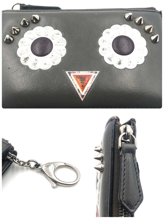 ■商品概要FENDI フェンディモンスターコインケース 小銭入れ キーホルダーイタリア製刻印ありブラックシルバー金具スタッズレザー 本革レディース