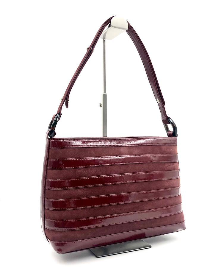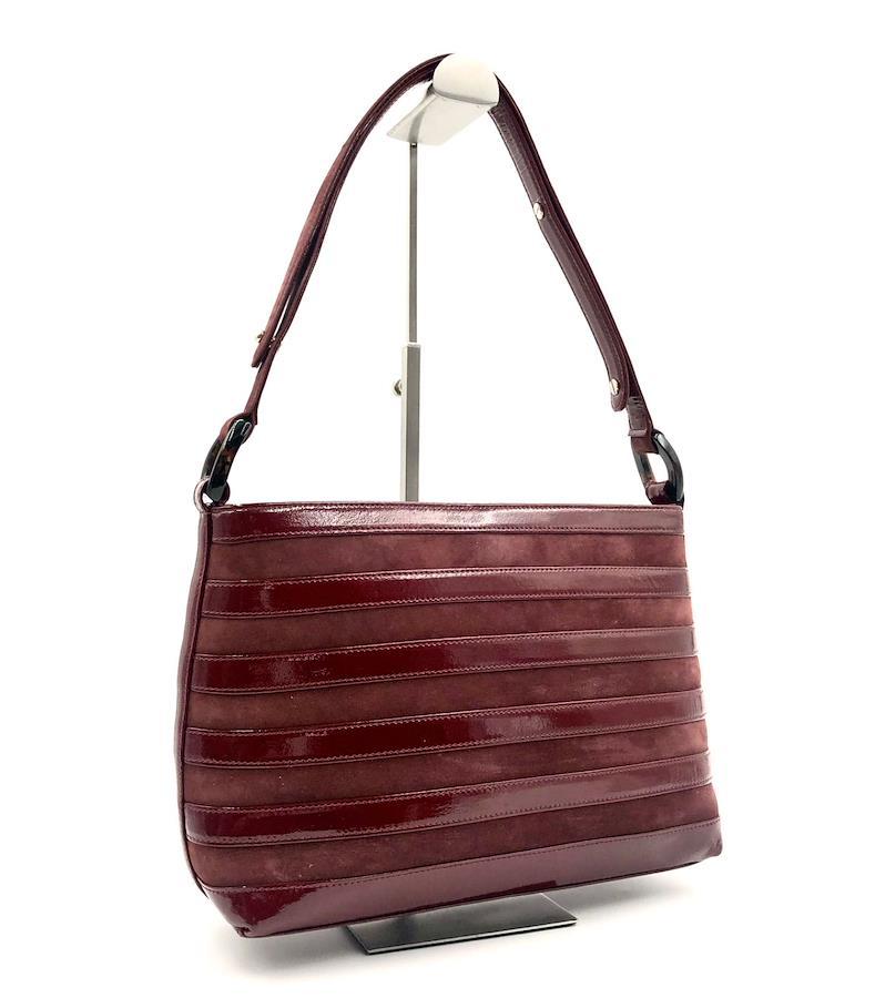 ■商品概要WAKO 銀座和光 ワコウワンショルダーバッグ ハンドバッグ トートバッグパテントレザー×スエード 本革ボーダーデザインボルドー底鋲ハンドル根本べっ甲風リングレディースパーティー、ラグジュアリー、結婚式、お祝い、式典、入学式、卒業式、イベント