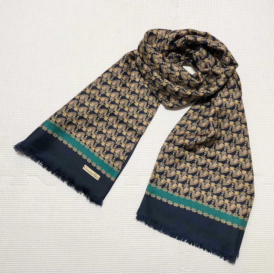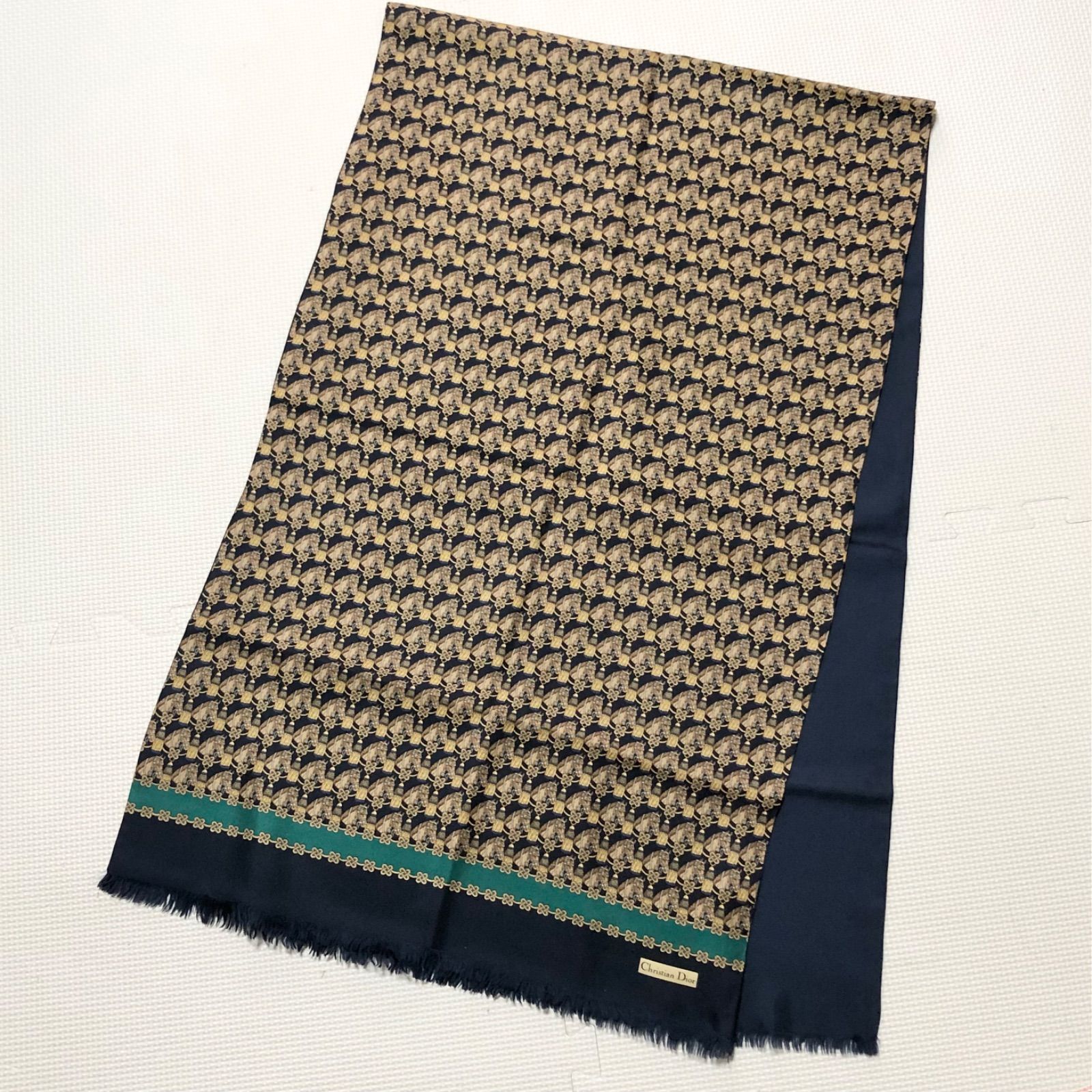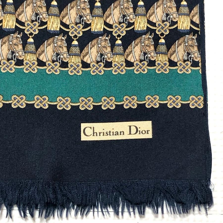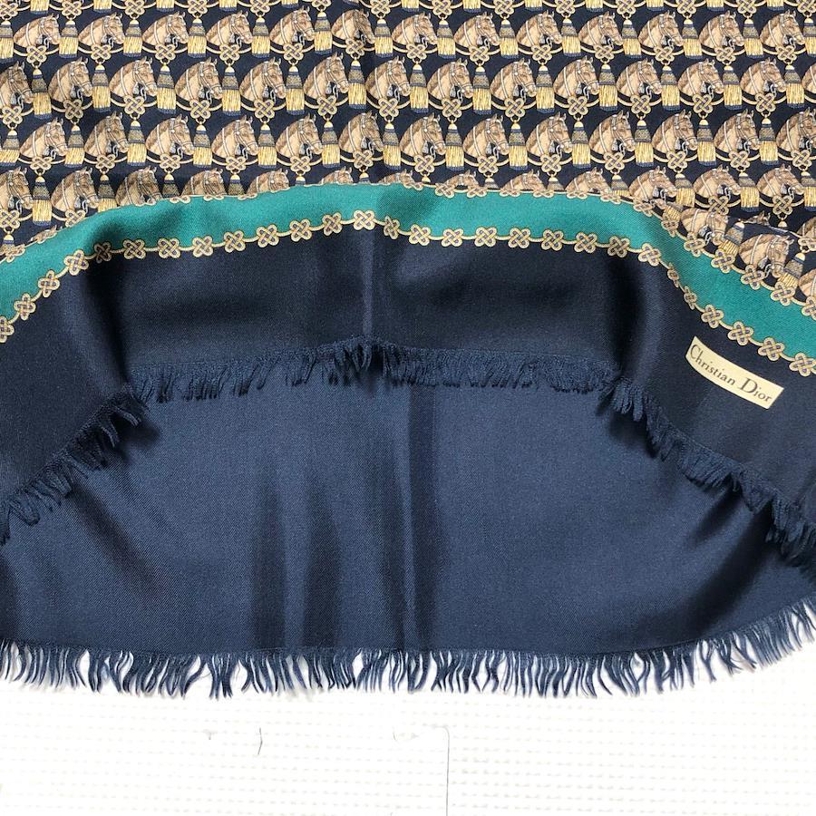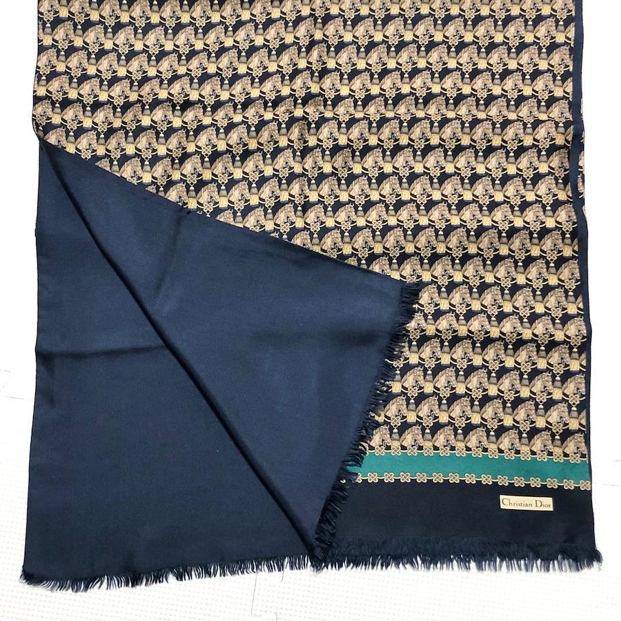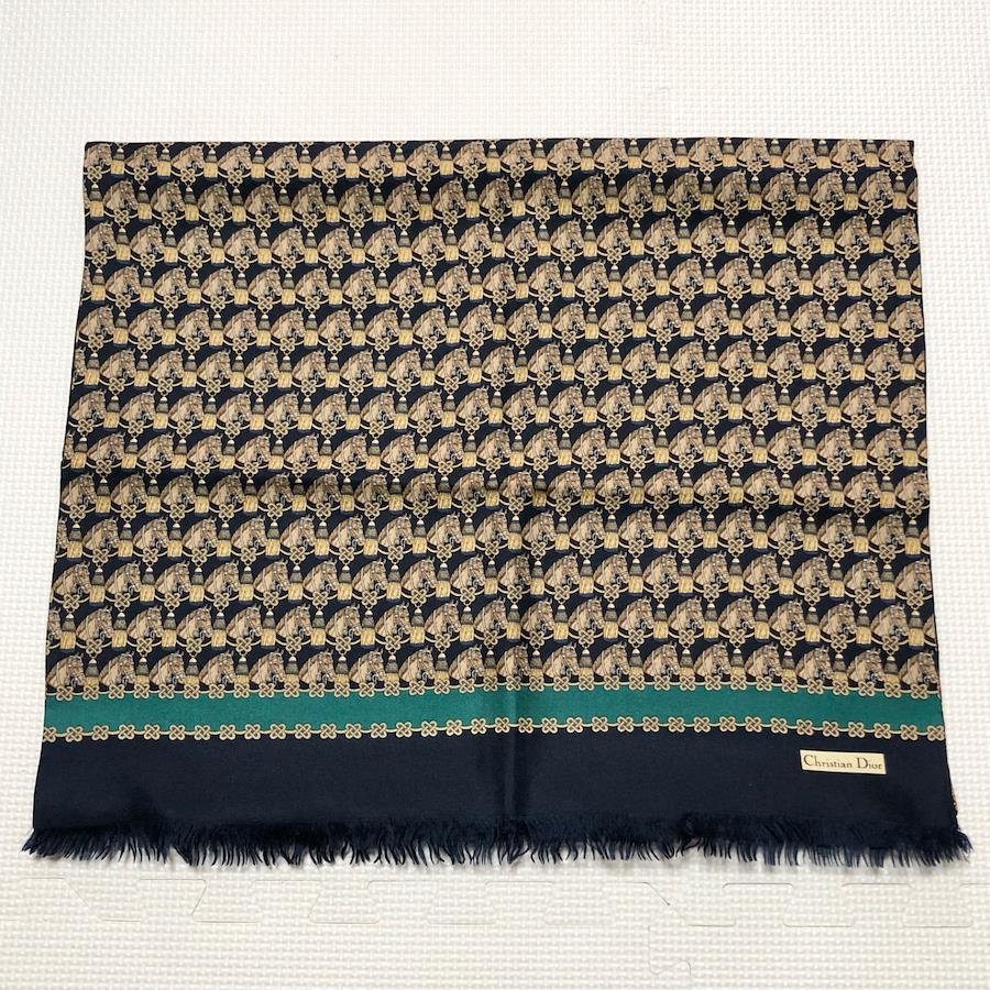 ■商品概要Christian Dior クリスチャンディオールロングストール シルクマフラー ショール 大判馬とタッセル飾り 総柄シルク100%イタリア製ネイビー×ゴールドイエロー×ブラウン×ブルー×エメラルドグリーンレディースラグジュアリー 高級 ハイブランド
