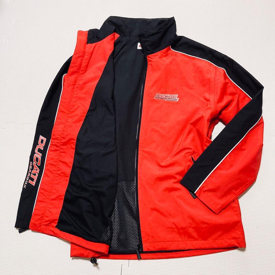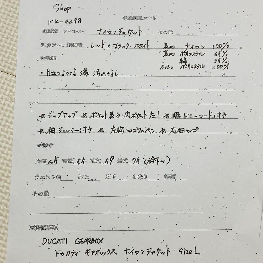 ■商品概要DUCATI ドゥカティGEARBOX ギアボックスライダースナイロンジャケット ブルゾン ジャンパーsizeLレッド×ブラック×ホワイトレース レーシング バイク ツーリング内側メッシュフルジップ裾ドローコードメンズ