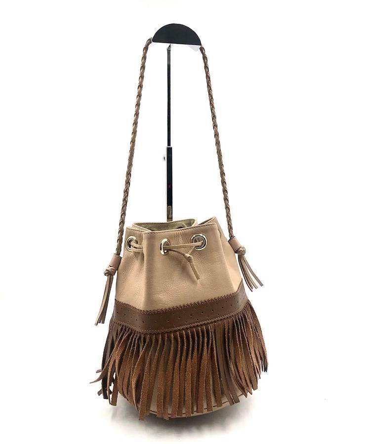 ■商品概要J&M DAVIDSON ジェイアンドエムデヴィッドソンカーニバルフリンジバッグ ショルダーバッグベージュ×ブラウンスペイン製巾着レザー 本革レディース保存袋