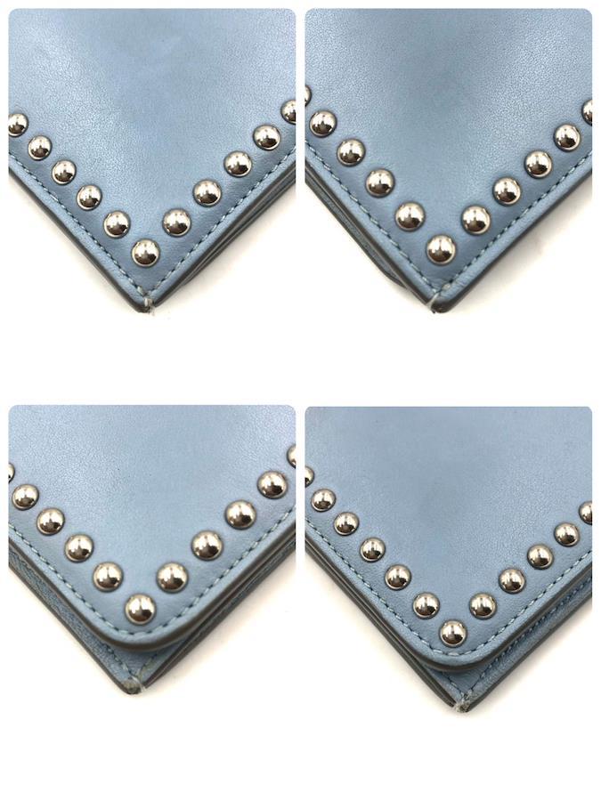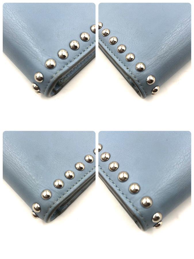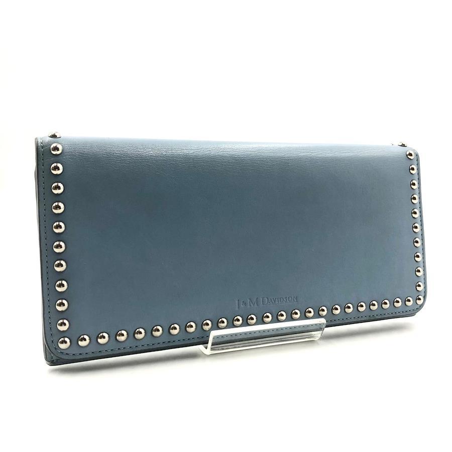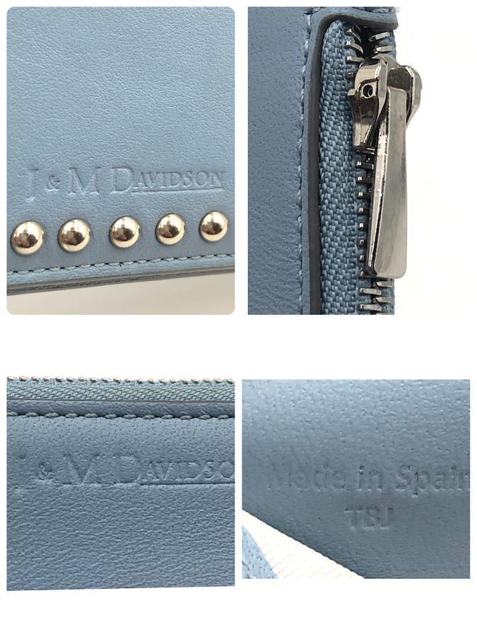 ■商品概要J&M DAVIDSON ジェイアンドエムデヴィッドソンスタッズ長財布+ミニポーチ(小銭入れ)二つ折りレザー 本革ライトブルーシルバー金具ロゴエンボススペイン製刻印あり 高級ラグジュアリー