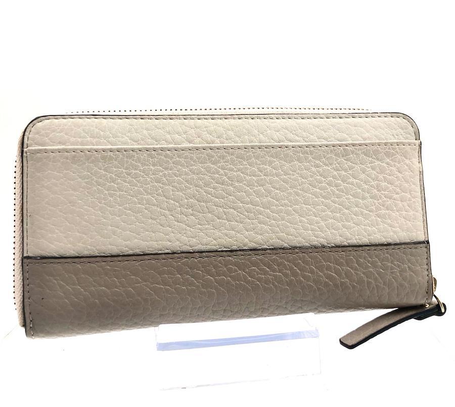 ■商品概要kate spade NEW YORKケイトスペードニューヨークラウンドファスナー ラウンドジップ 長財布レザー 本革バイカラー ホワイト×グレーゴールド金具レディース