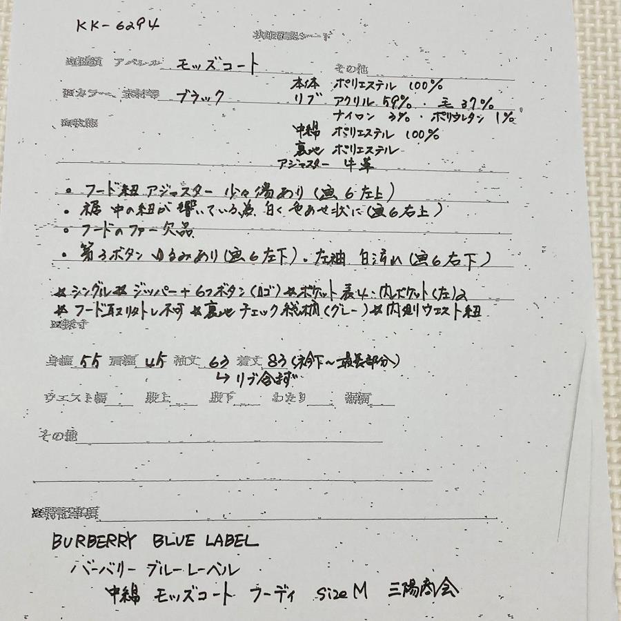 ■商品概要BURBERRY BLUE LABEL バーバリーブルーレーベル中綿モッズコートフーディ フードフィッシュテールM-51風 ミリタリーコートブラックsizeM三陽商会レディース