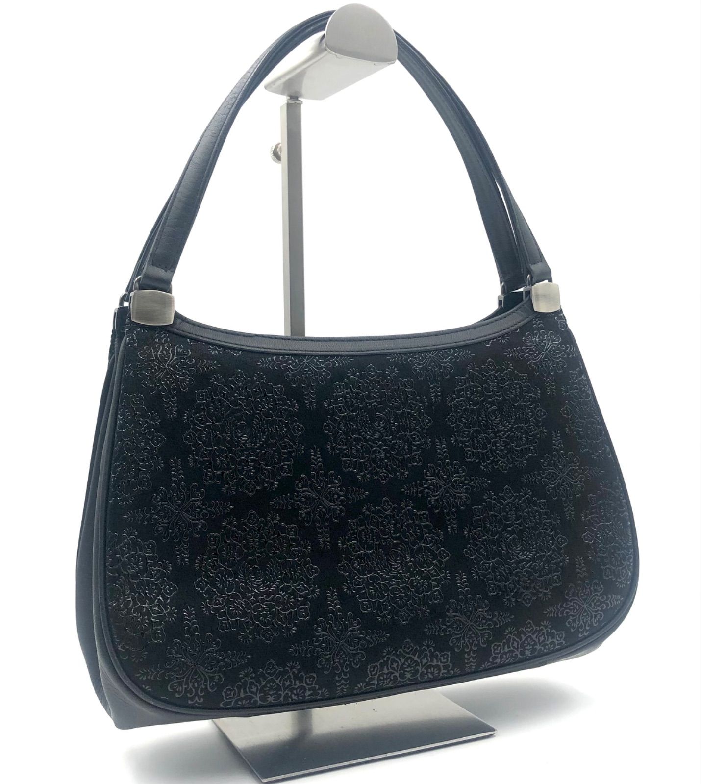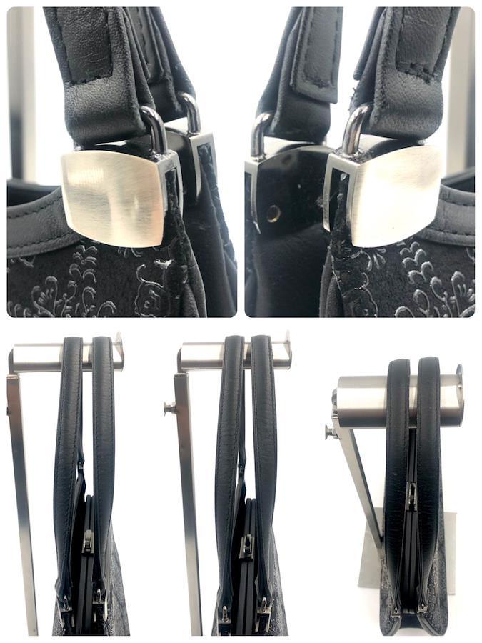 ■商品概要印傳屋 インデンヤ INDENYAハンドバッグ花柄 総柄鹿革 ディアスキンレザー甲州印伝ブラック系シルバー金具シールありレディースパーティー、ラグジュアリー、結婚式、お祝い、式典、入学式、卒業式、入社式、イベント保存袋あり