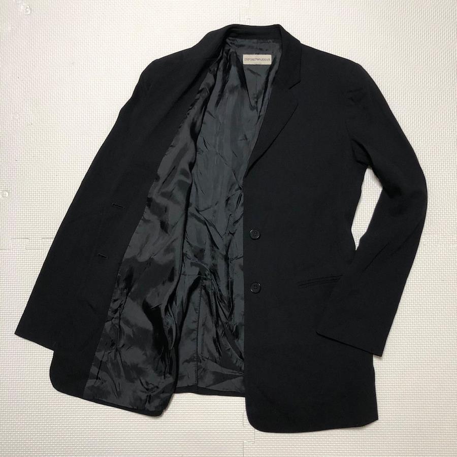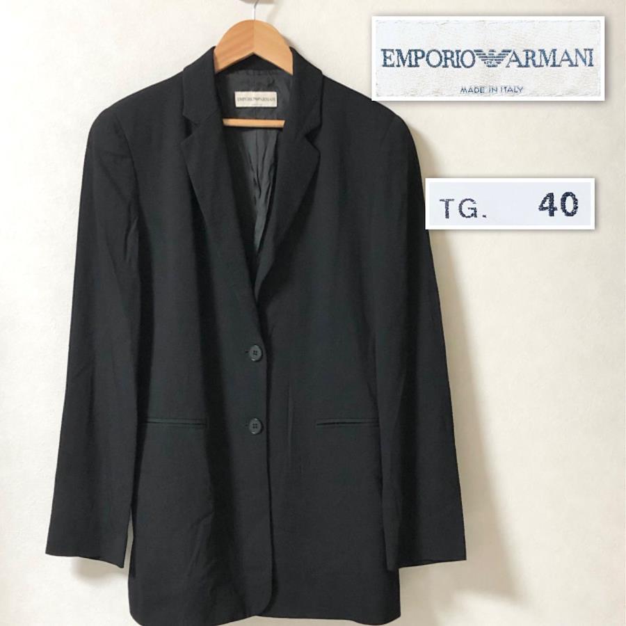 ■美品■EMPORLIO ARMANI エンポリオアルマーニ テーラードジャケット シングル 2つボタン ブラック size40(L) サイドベンツ 薄い肩パッド イタリア製 ビスコース混ウール レディース