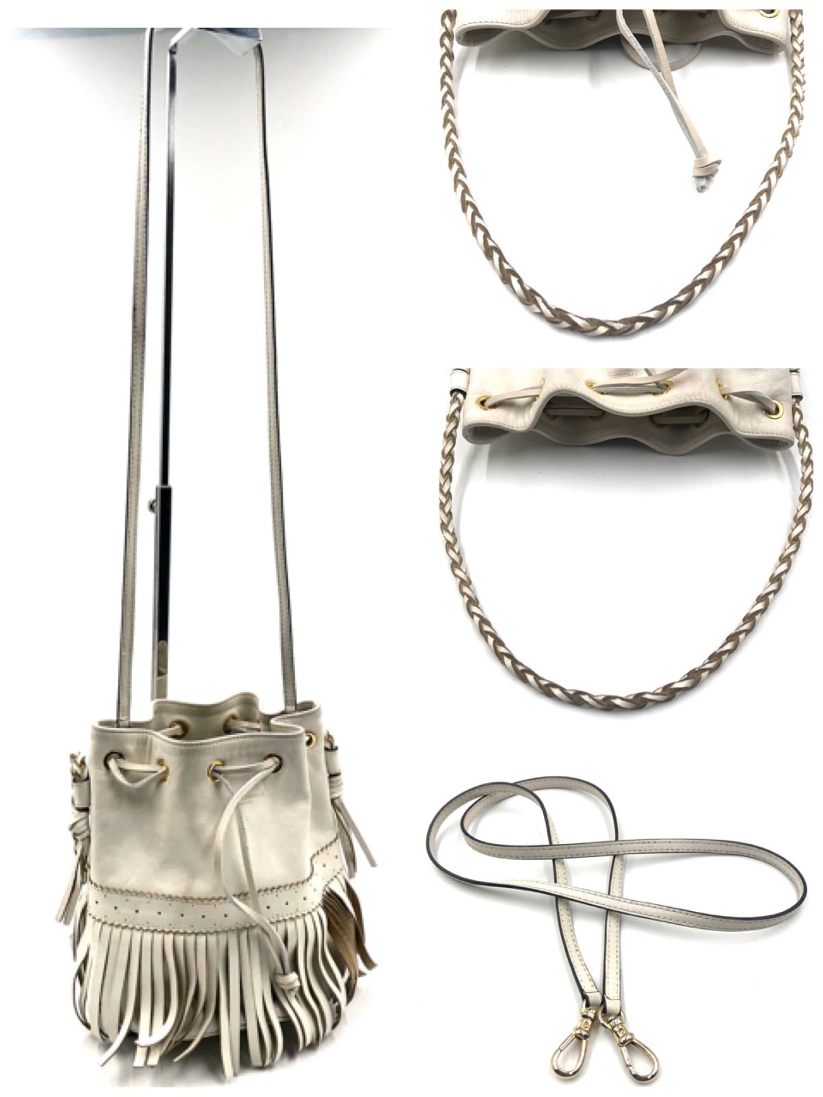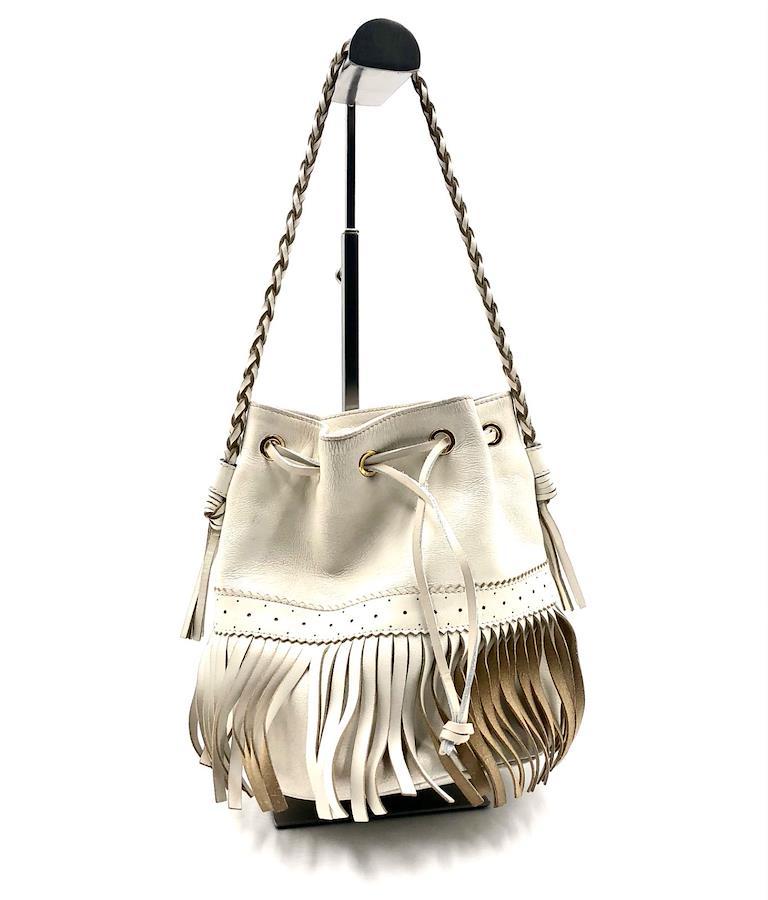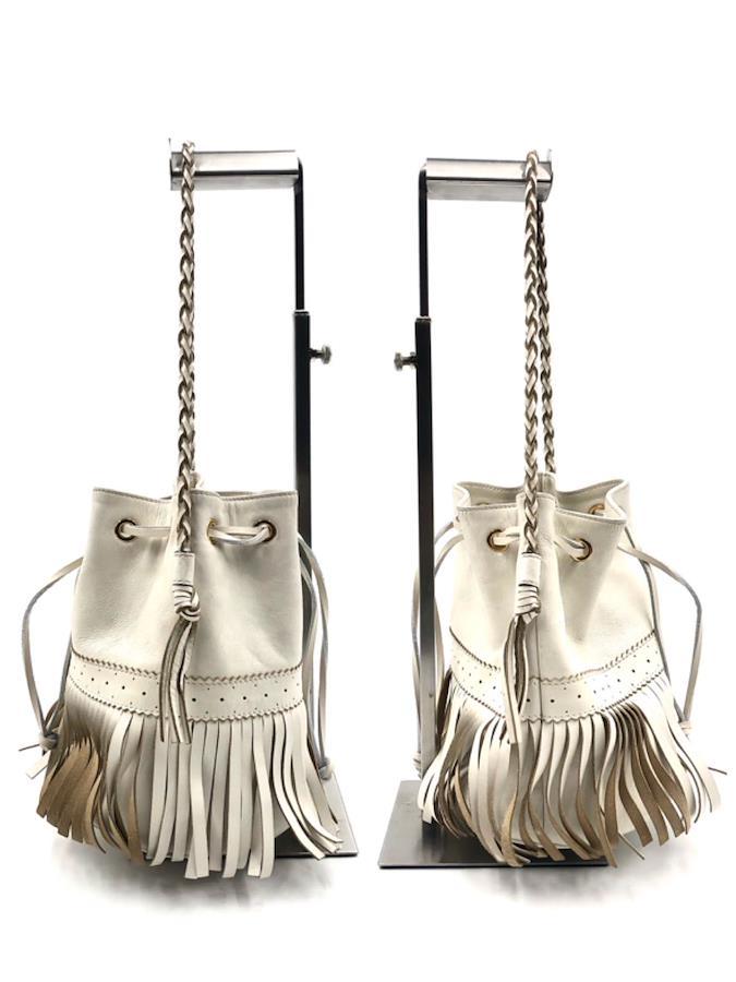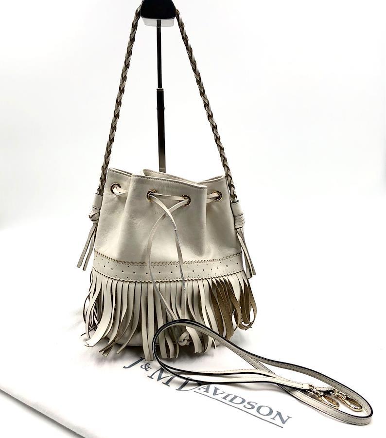 ■商品概要J&M DAVIDSON ジェイアンドエムデヴィッドソンカーニバルM2WAY フリンジバッグ ショルダーバッグホワイト系アイボリーゴールド金具スペイン製巾着レザー 本革パンチングレディースラグジュアリー 高級