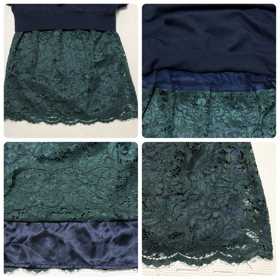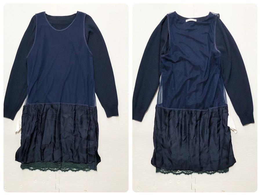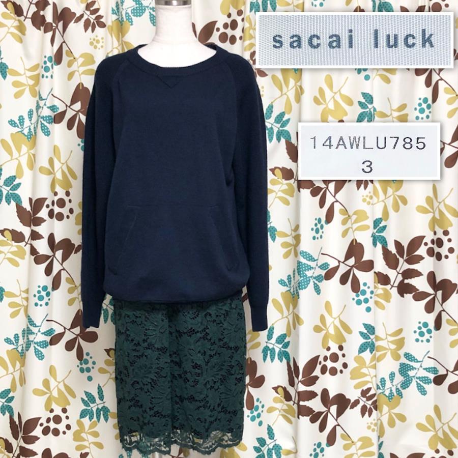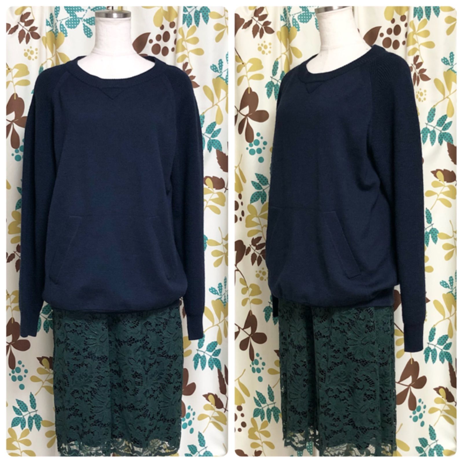 ■商品概要sacai luck サカイラックレイヤード ドッキングワンピースニット+レースラグランカンガルーポケットsize3(L)ネイビー×グリーンレディース薄手春秋