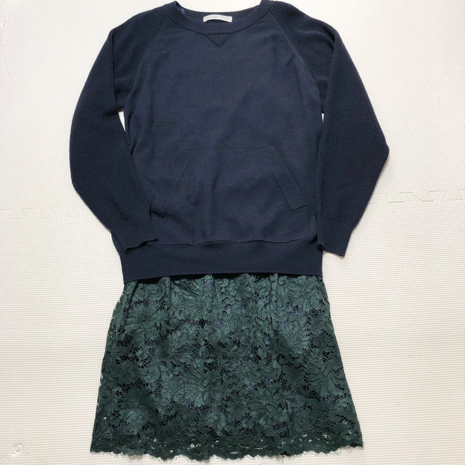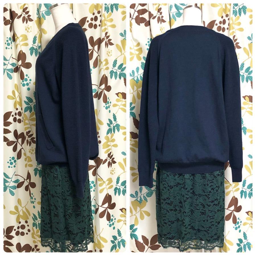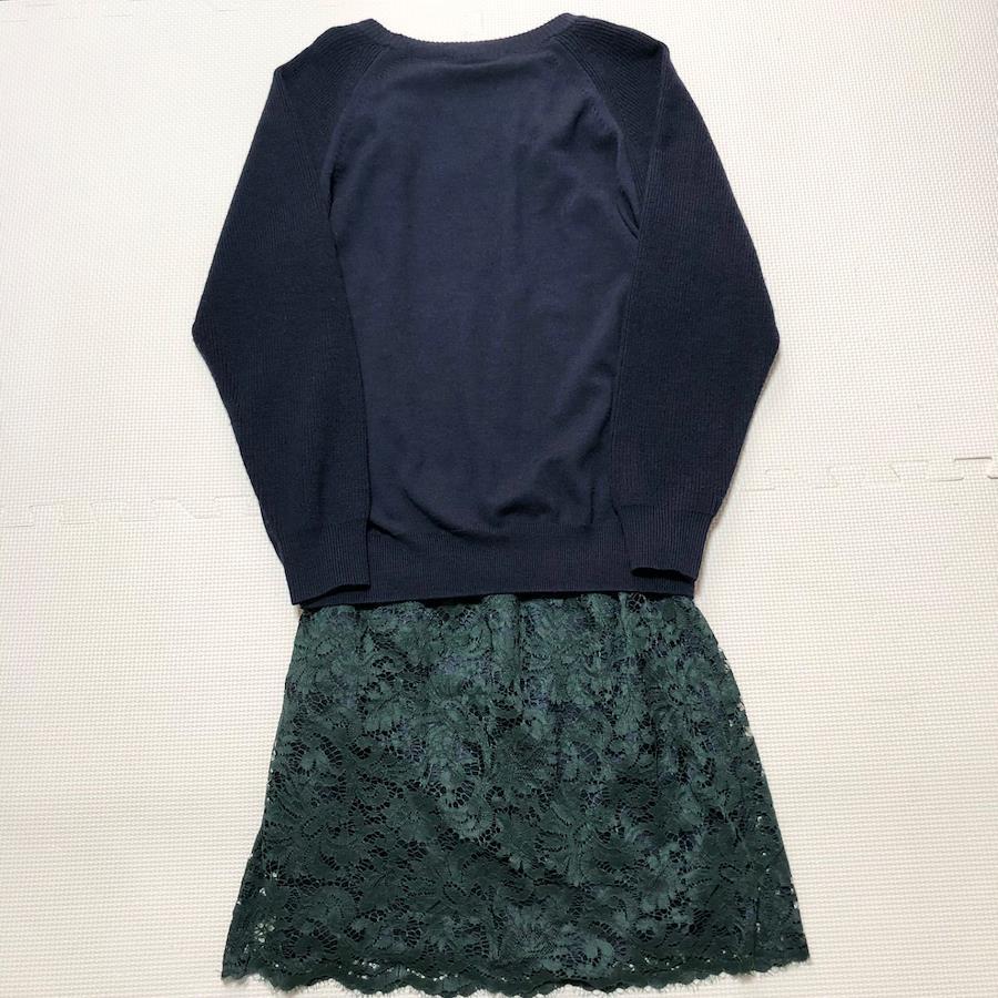■商品概要sacai luck サカイラックレイヤード ドッキングワンピースニット+レースラグランカンガルーポケットsize3(L)ネイビー×グリーンレディース薄手春秋