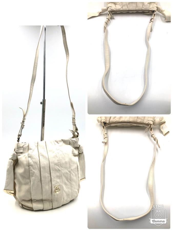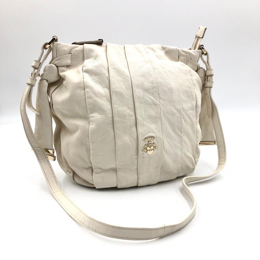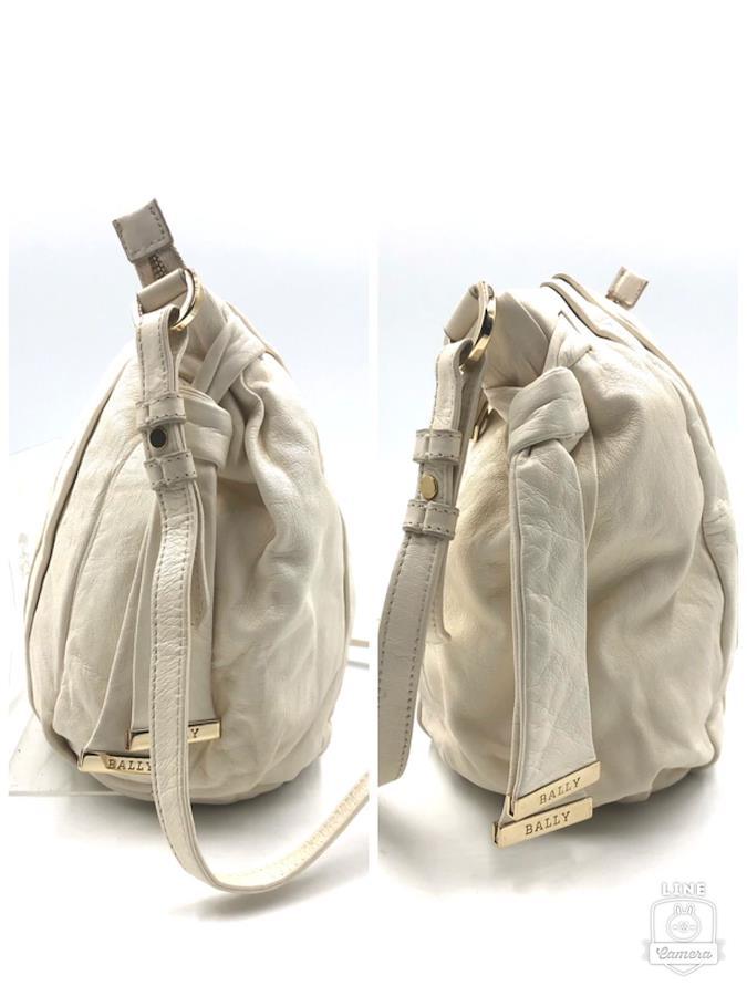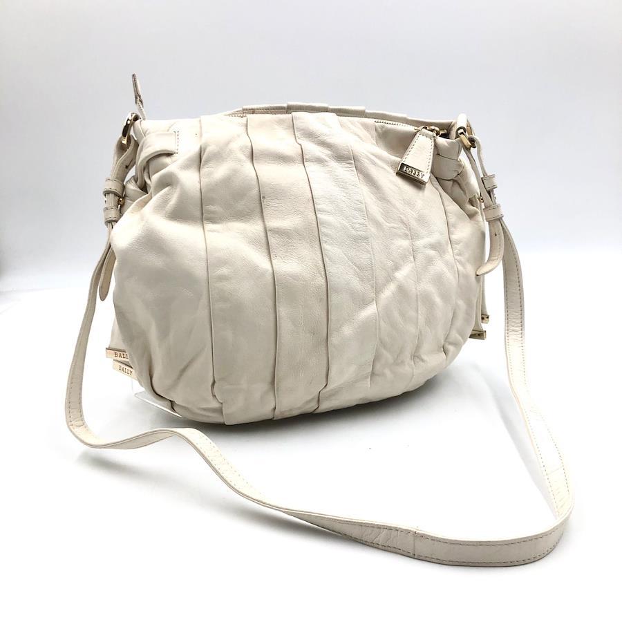 ■商品概要BALLY バリーロゴ金具エンブレムショルダーバッグギャザーリボンレザー 本革ホワイト系アイボリーゴールド金具イタリア製レディース