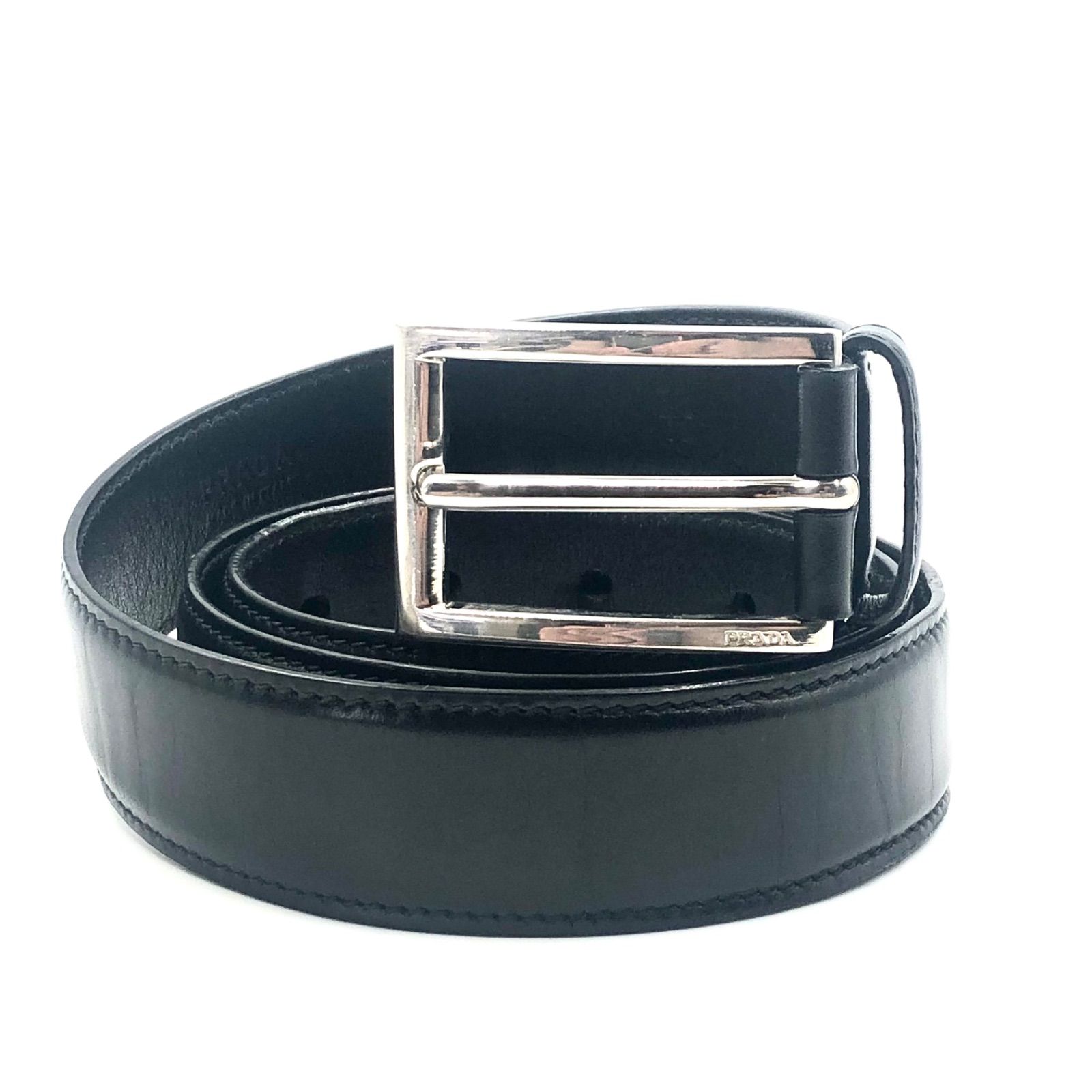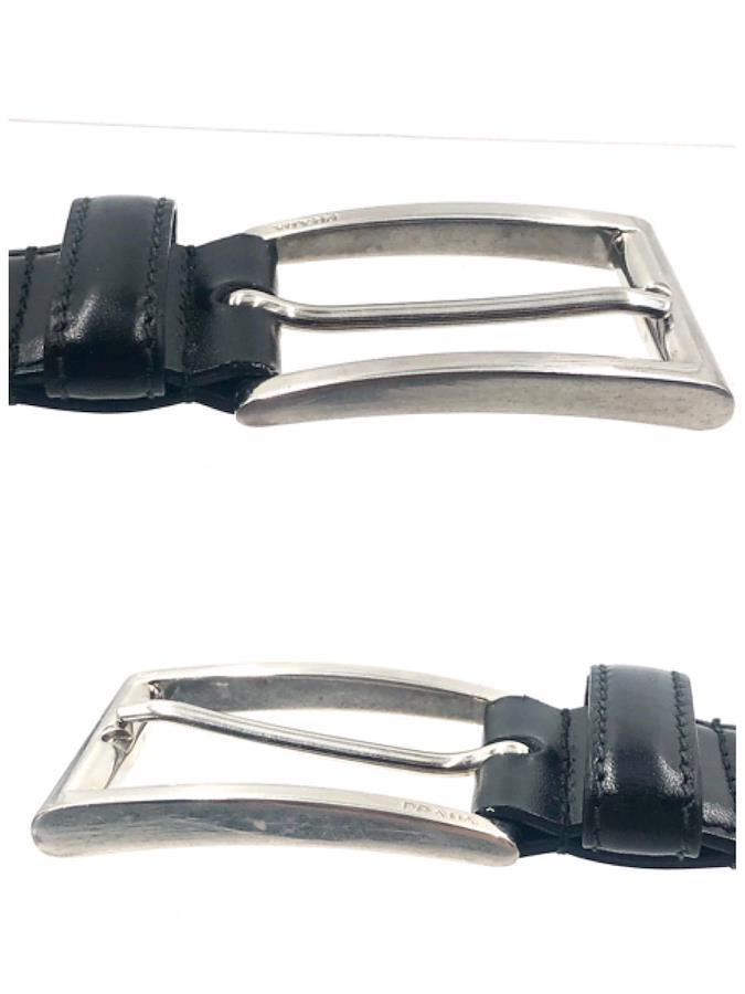 ■商品概要PRADA プラダベルトレザー 本革ロゴバックルブラックシルバー金具イタリア製刻印ありサイズ34/85ウエスト76~86cmメンズビジネスラグジュアリー 高級 ハイブランド