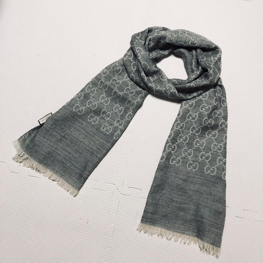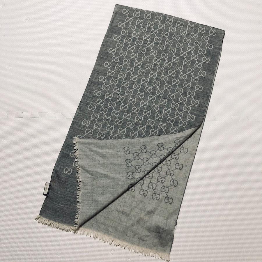 ■商品概要■近年タグ■GUCCI グッチGG×ディアマンテ総柄 GG柄 ロゴ総柄ロングストール ショール 薄手マフラーウール×シルクグレーイタリア製タグあり45×180cmラグジュアリー 高級 ハイブランド