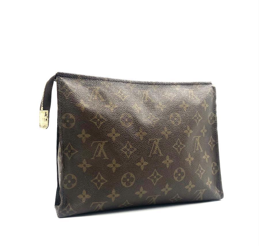 ■商品概要LOUIS VUITTON ルイヴィトンモノグラムポッシュトワレット26クラッチバッグ コスメポーチPVCフランス製希少レザータグブラウンゴールド金具ファスナー&ファスナーレーン交換品(過去履歴不明のため、正規修理か社外修理か不明)