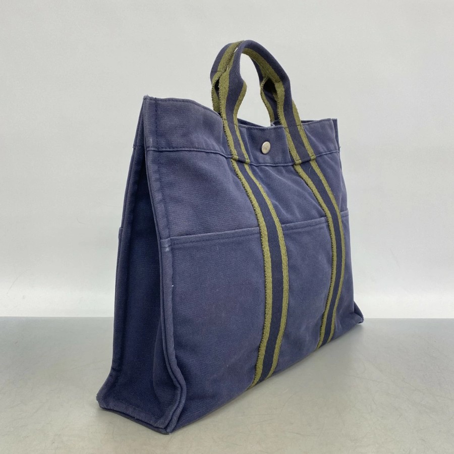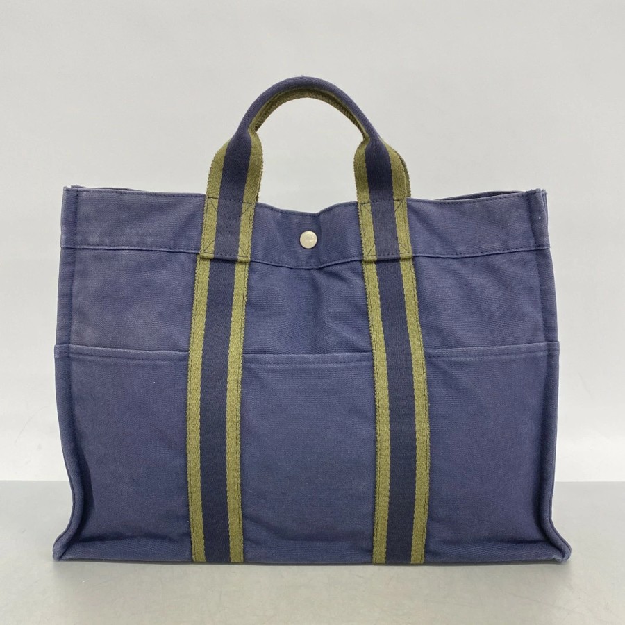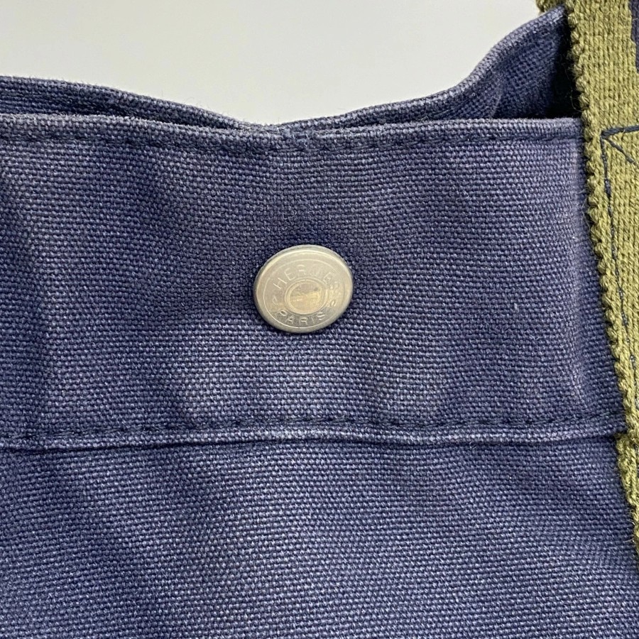 ★SALE【6db1436】エルメス トートバッグ フールトゥMM キャンバス ネイビー モスグリーン シルバー金具【中古】メンズ レディース ユニセックス