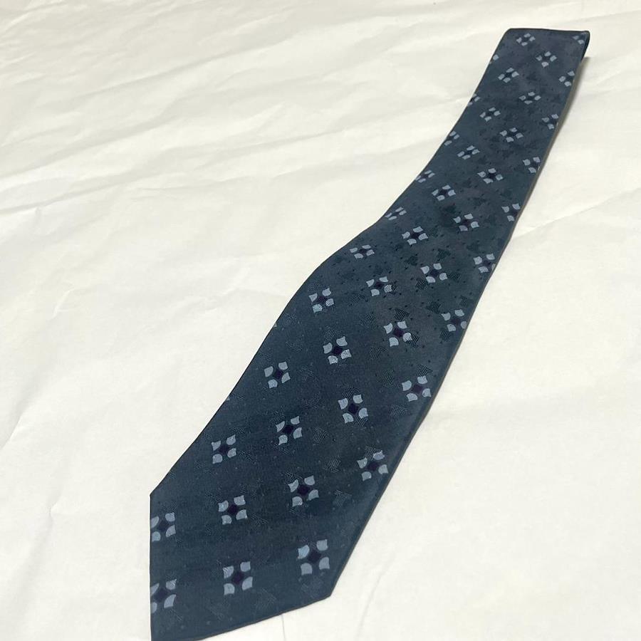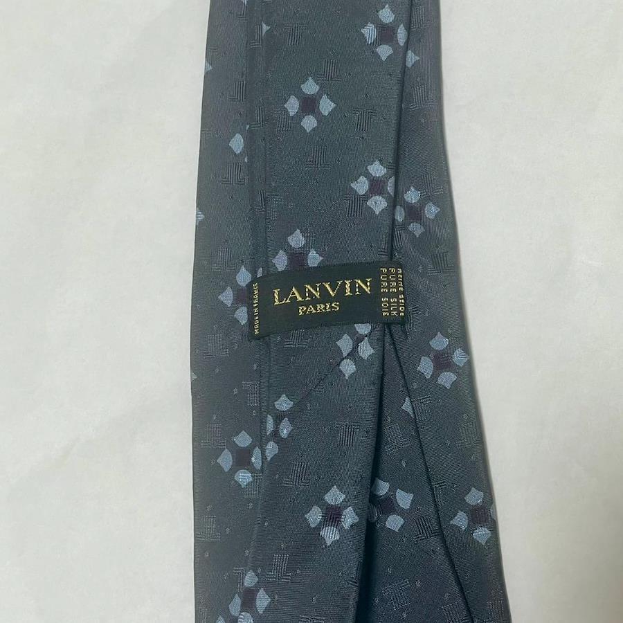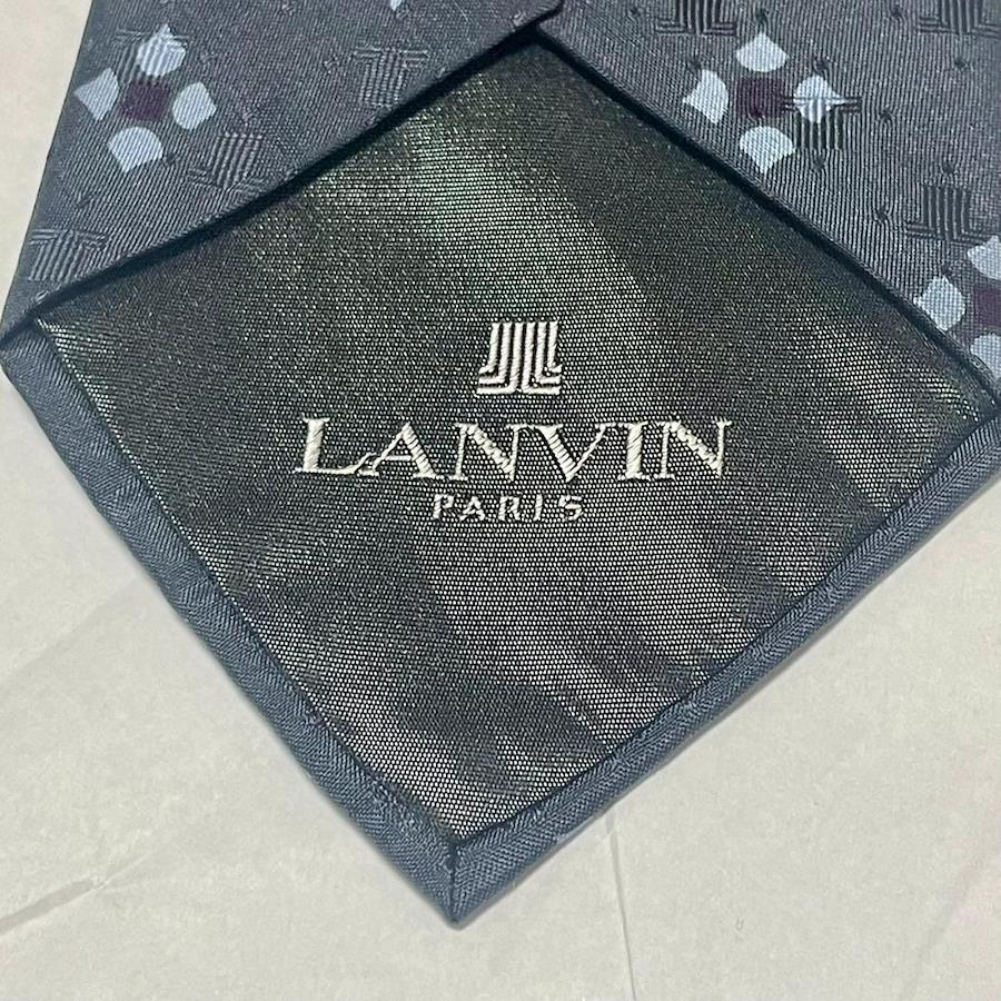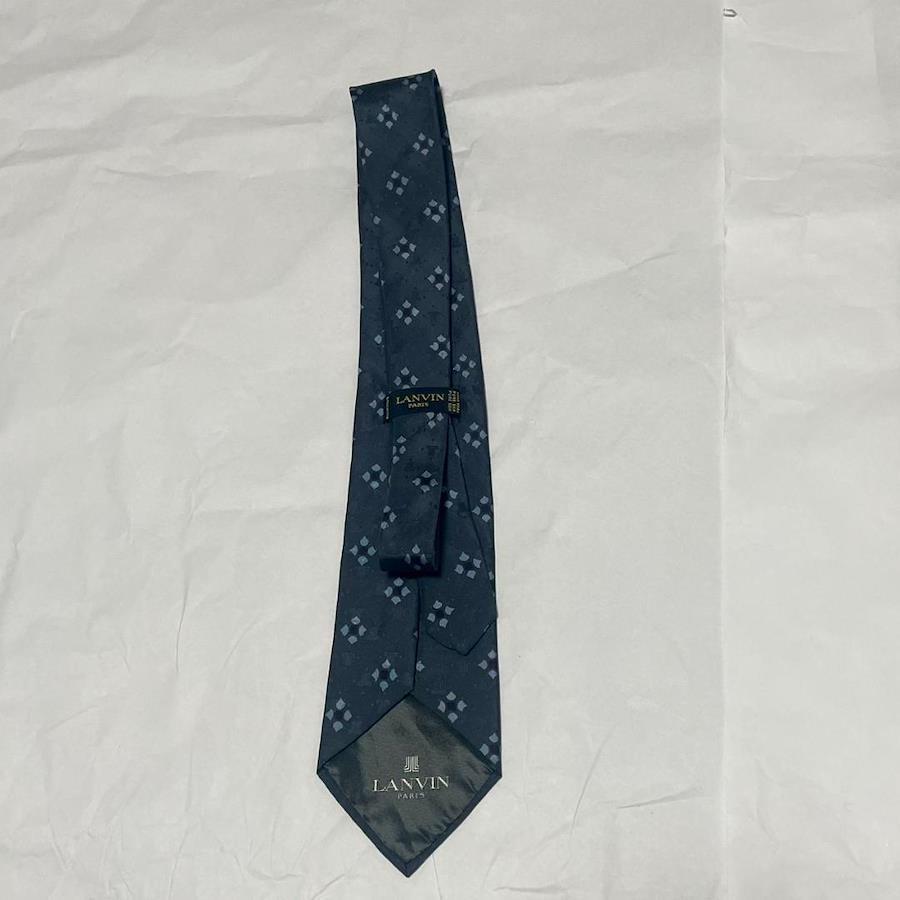 ☆こちらの商品はUSED品ですので新品や未使用品をお求めの方はご遠慮ください。ダークブルーの幾何学模様が特徴的なLANVINのネクタイ。