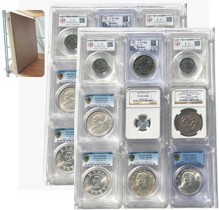 透明で耐久性の高いPET素材を使用し、NGC・PCGS鑑定済みスラブコインをそのまま収納・保護できるコインアルバム用追加リフィル(2穴/3穴/4穴対応)のHARDタイプです。