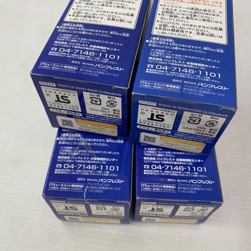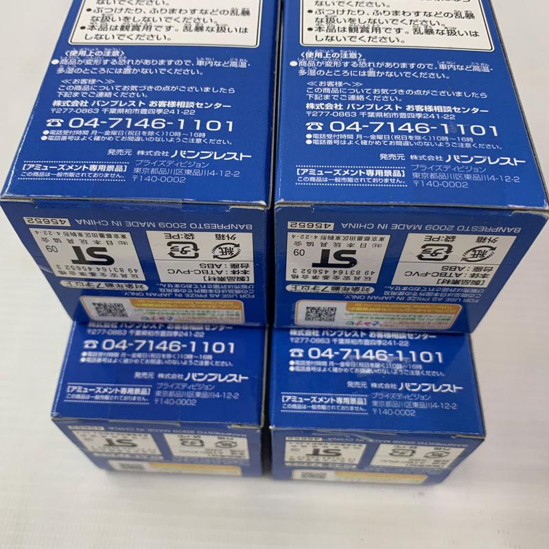 いずれも未開封品ですが、アミューズメント商品なのでアーム爪跡、落とし痕、テープの多重貼りや、メーカー検品による二度貼り、版権シールのズレや一部剥がれ等が見られる場合があります。美品をお求めの方、キズや汚れ等の状態を気にされる方のご購入はご遠慮下さい。