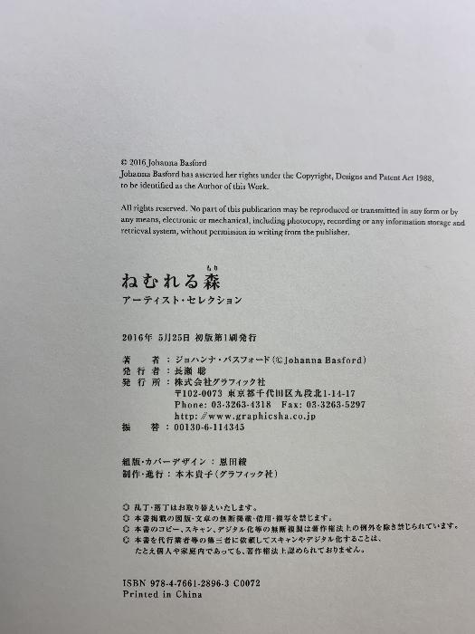 「めむれる森」夢いっぱいのぬりえブック 発行:グラフィック社 著:ジョハンナ・バスフォード 2016年
