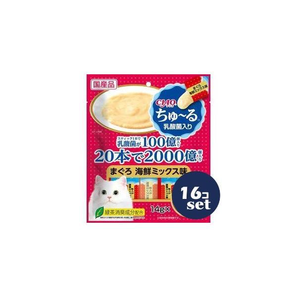 まぐろ、ほたてエキス、かつお節エキス、糖類(オリゴ糖等)、まぐろエキス、殺菌乳酸菌、植物性油脂、増粘剤(加工でん粉)、ミネラル類、増粘多糖類、調味料(アミノ酸等)、ミルクカルシウム、ビタミンE、紅麹色素、緑茶エキス