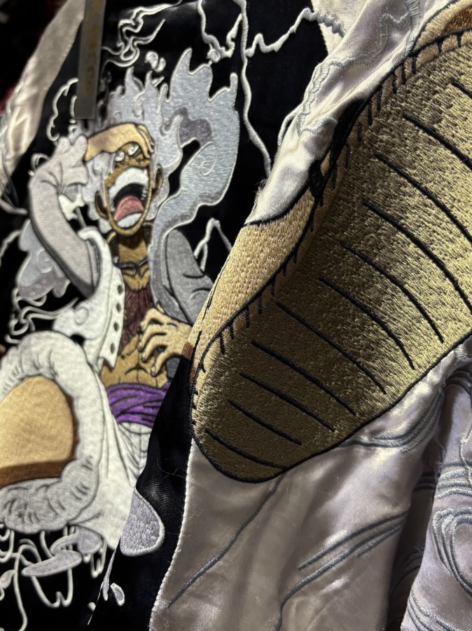 伝説の「ゴムゴムの実」が覚醒し、ルフィの真の姿「太陽の神ニカ」となった「ギア5」。その圧倒的な力を全身に宿した、絡繰魂とONE PIECEのコラボリバーシブルスカジャンが登場!このスカジャンは、ただのキャラクターグッズではありません。和柄の真髄を知る絡繰魂が、ルフィの「ギア5」を徹底的に解釈し、最高級の刺繍とサテン生地で表現した至高の一着です。まさに「太陽の神」!圧巻の刺繍技術表面には、まさに「ギア5」となったルフィの姿を、躍動感あふれる刺繍で大胆に表現。白一色の髪、ニカっと笑う口元、自由奔放なポーズ…、そのすべてが、熟練の職人による緻密な刺繍で再現されています。さらに、背景には太陽や雲、稲妻などをあしらい、「太陽の神」降臨の瞬間をドラマチックに演出。刺繍のボリューム感と、金糸・銀糸の輝きが、圧倒的な存在感を放ちます。裏面は、ルフィの覚醒を象徴するアイテムをモチーフに裏面は、ルフィがギア5に目覚めるきっかけとなった「ゴムゴムの実」を大胆にデザイン。渦巻き模様の「ゴムゴムの実」が、サテン生地に美しく映えます。さらに、ルフィのトレードマークである麦わら帽子もあしらい、ルフィの成長と覚醒を象徴するデザインに。シンプルながらもメッセージ性の強い、もうひとつの顔を楽しめます。高級感漂うサテン生地と、こだわりのディテール素材には、滑らかな肌触りと美しい光沢が特徴のサテン生地を使用。和柄スカジャンならではの高級感と、上品な雰囲気を醸し出します。襟や袖口、裾には、ヴィンテージ感を演出するリブを使用。さらに、ONE PIECEのロゴが刻印されたオリジナルジッパーなど、細部までこだわり抜いた仕上がりです。リバーシブルだからこそ楽しめる、2つの表情気分やコーディネートに合わせて、2つの表情を楽しめるリバーシブル仕様。表面で「ギア5」の圧倒的なパワーをアピールしたり、裏面でルフィの覚醒を密かに楽しんだり…。一着で2つの楽しみ方ができる、まさに「神」スカジャンです。身幅 約56cm着丈 約66cmどうぞよろしくお願い致します。
