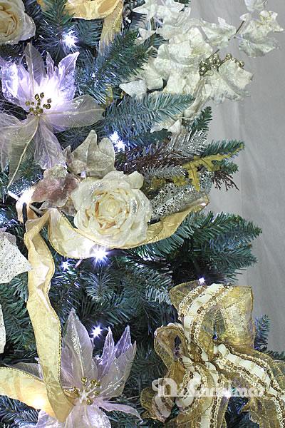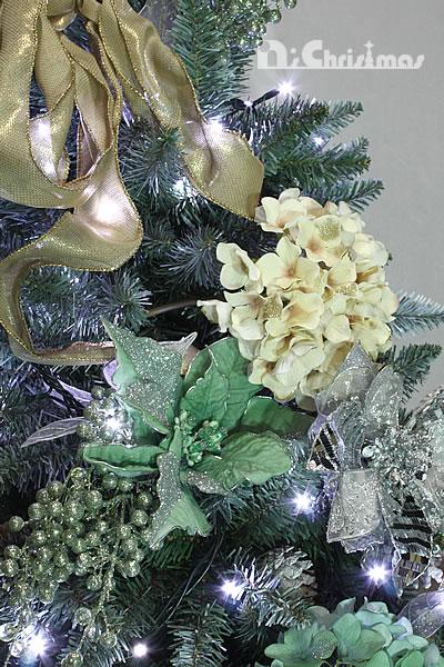 枝色の濃淡がすべて違うので、どの角度から見ても飽きず、また、雪化粧を施したことで、ホワイトツリーの代役として、いやむしろ自然な雰囲気のホワイトツリーとしても活躍してくれます。もちろん、枝の量も十分以上にいっぱいありますので、とても高級感があります。もう一つ。電球のコードはグリーンのタイプでOKです。