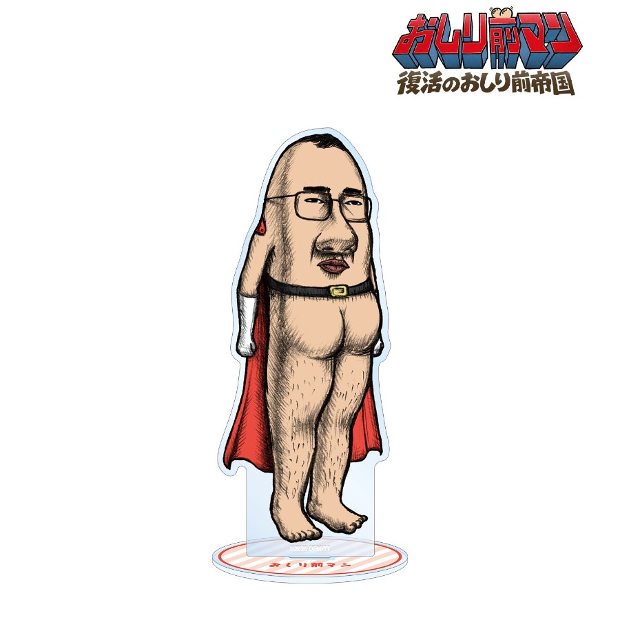 『おしり前マン~復活のおしり前帝国~』より、BIGアクリルスタンドの登場です。 おしり前マンのカラーイラストをBIGなアクリルスタンドに仕上げました。 お部屋やデスクまわりなどに飾って、キャラクターとの日常をお楽しみください。