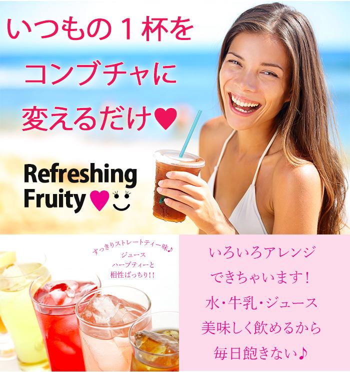 食物繊維や酵母、乳酸菌、キノコキトサンなどの美容成分をたっぷり配合。いつもの1杯をコンブチャに変えるだけのお手軽ダイエットです。