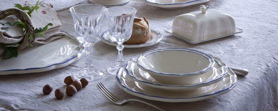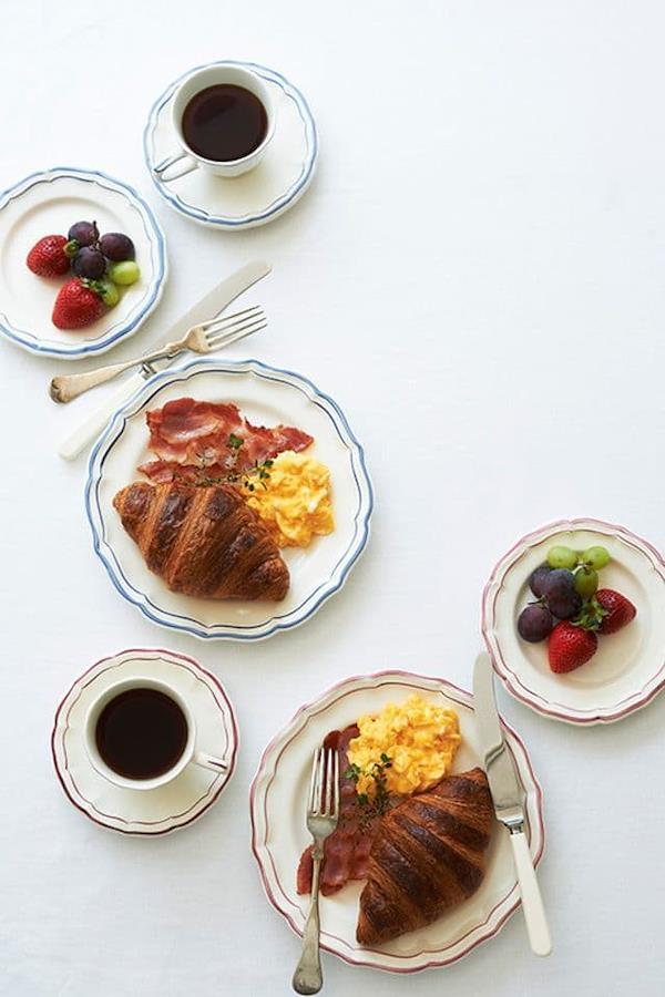ブルーのラインがさわやかな「フィレブルー」は、どんな器とも合わせやすいのもいいところ。