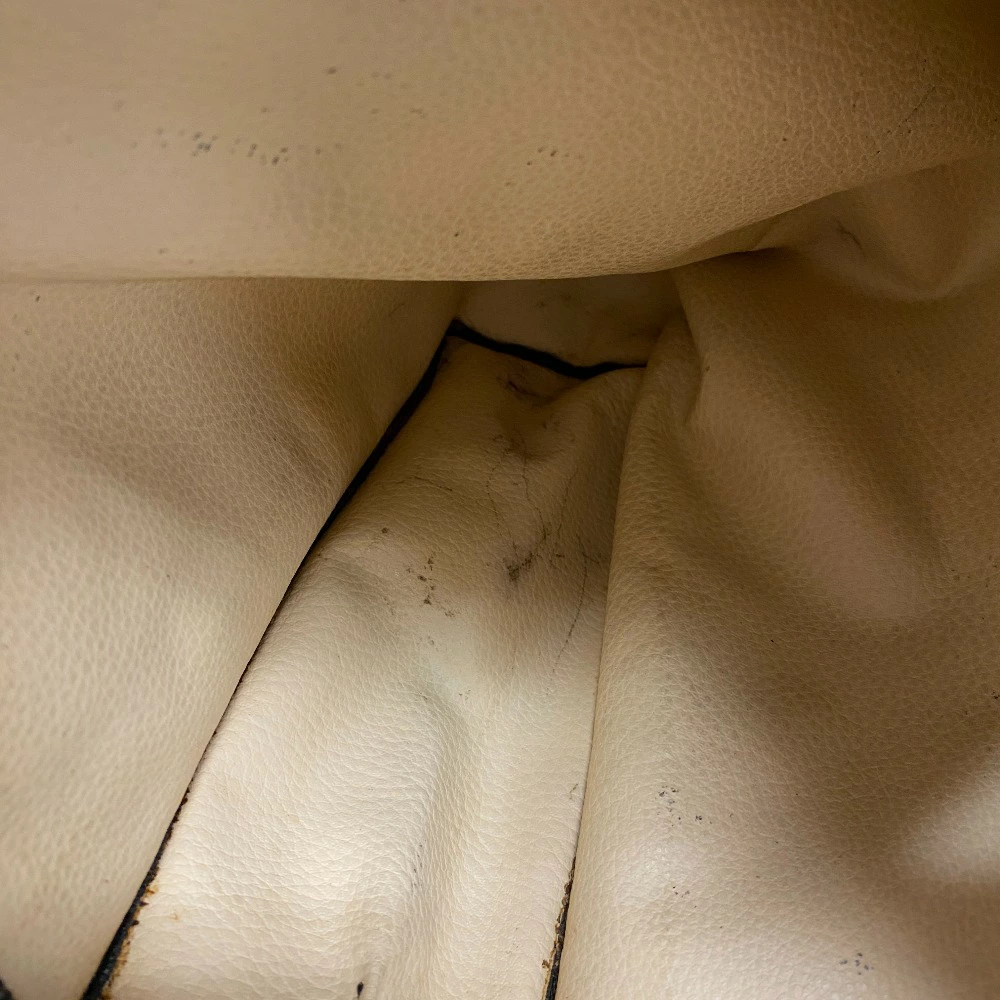 状態 | 外・表面:スレ、キズ、汚れ、ベタつき外・コーナー:スレ、キズ、汚れ、ベタつき、亀裂 外・形状:型崩れ 内側:スレ , キズ , ペン跡 , 汚れ , 黒ずみ , シミ ファスナー部分:スレ、キズ、くすみ、汚れ におい:匂いあり(強くない) 金具部分:スレ、キズ、汚れ、くすみ、打痕 |
