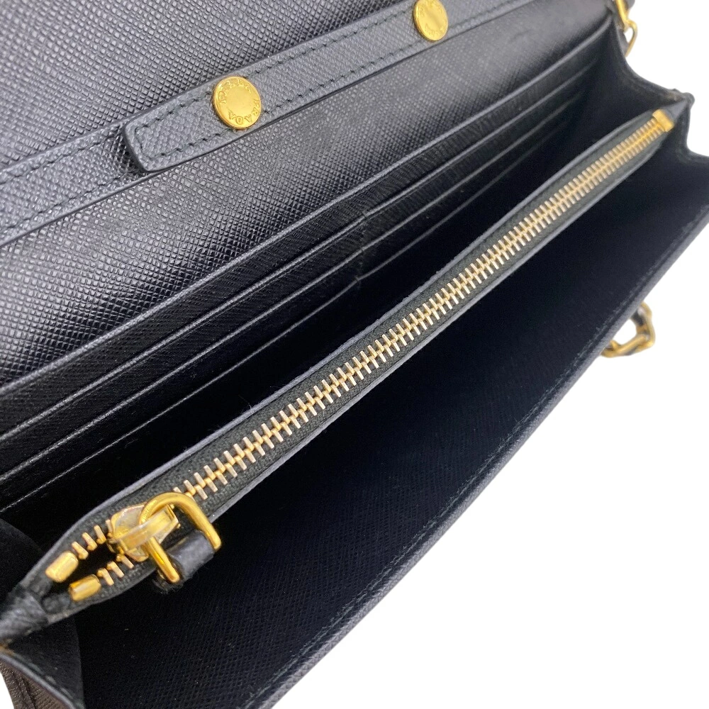 商品名 | PRADA/プラダ 1MT290 チェーンウォレット ショルダーバッグ サフィアーノ 長財布 ブラック ユニセックス |