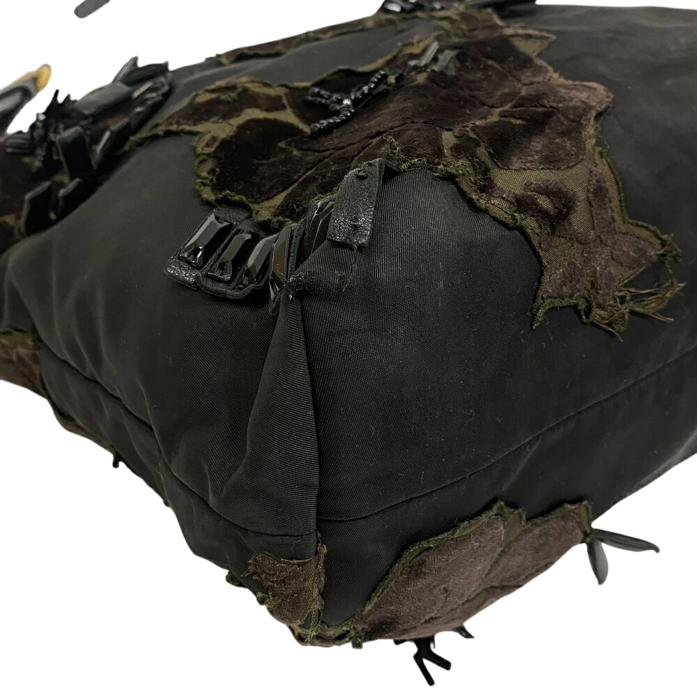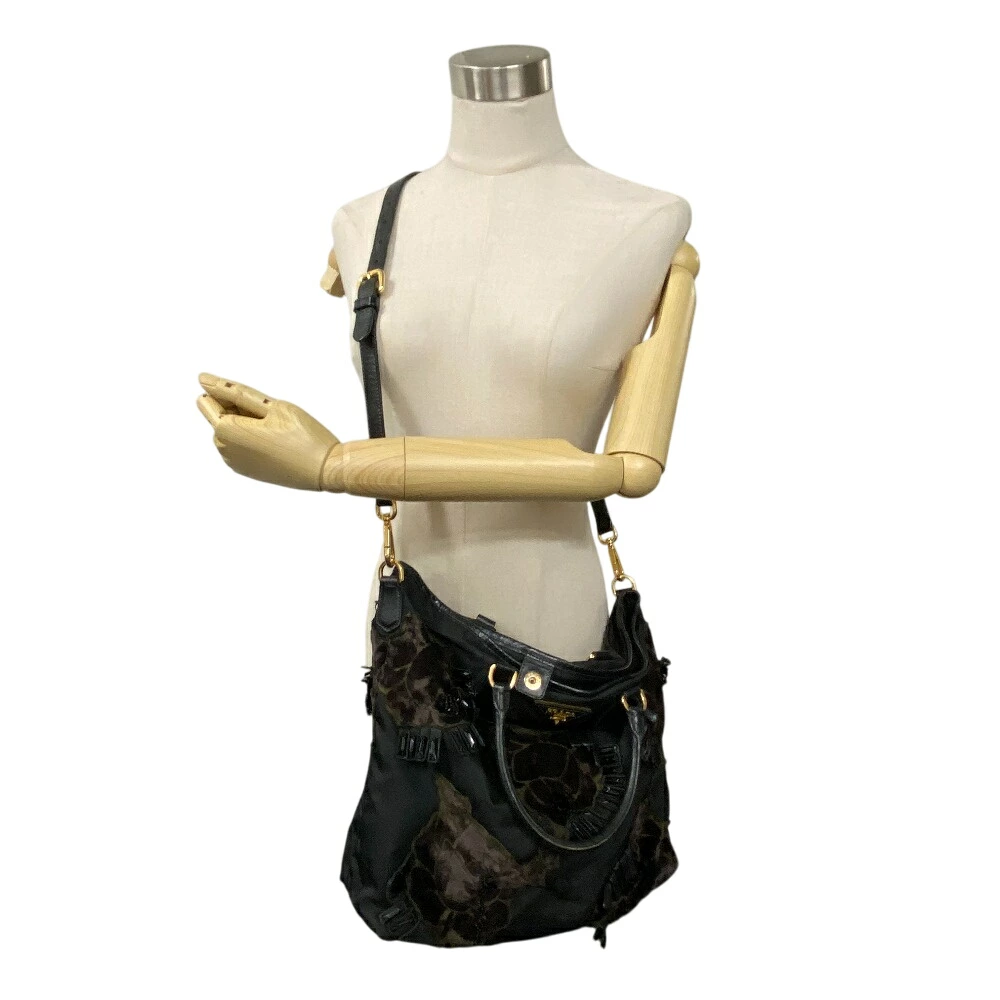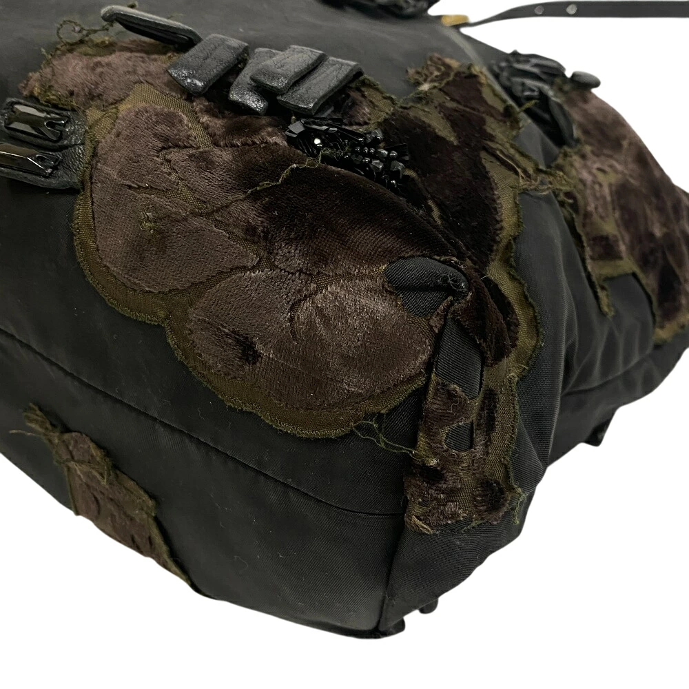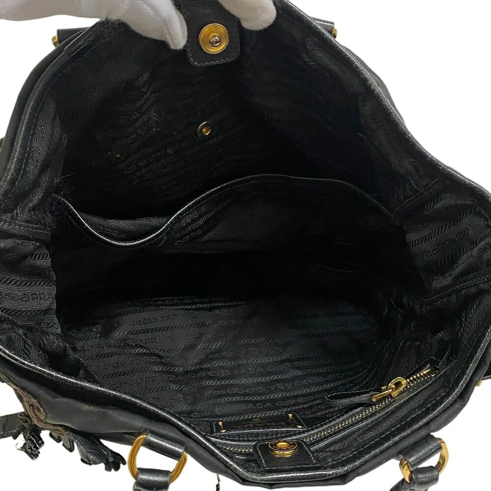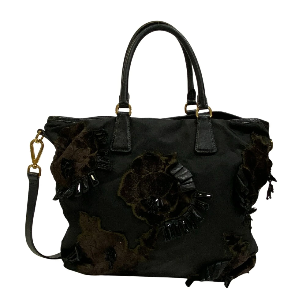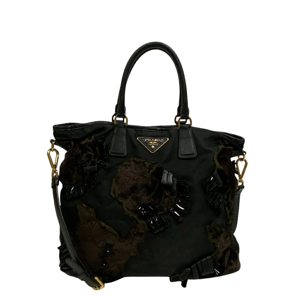 商品名 | PRADA/プラダ B1856S ビーズフラワー 三角プレート ショルダーバッグ ブラック レディース |