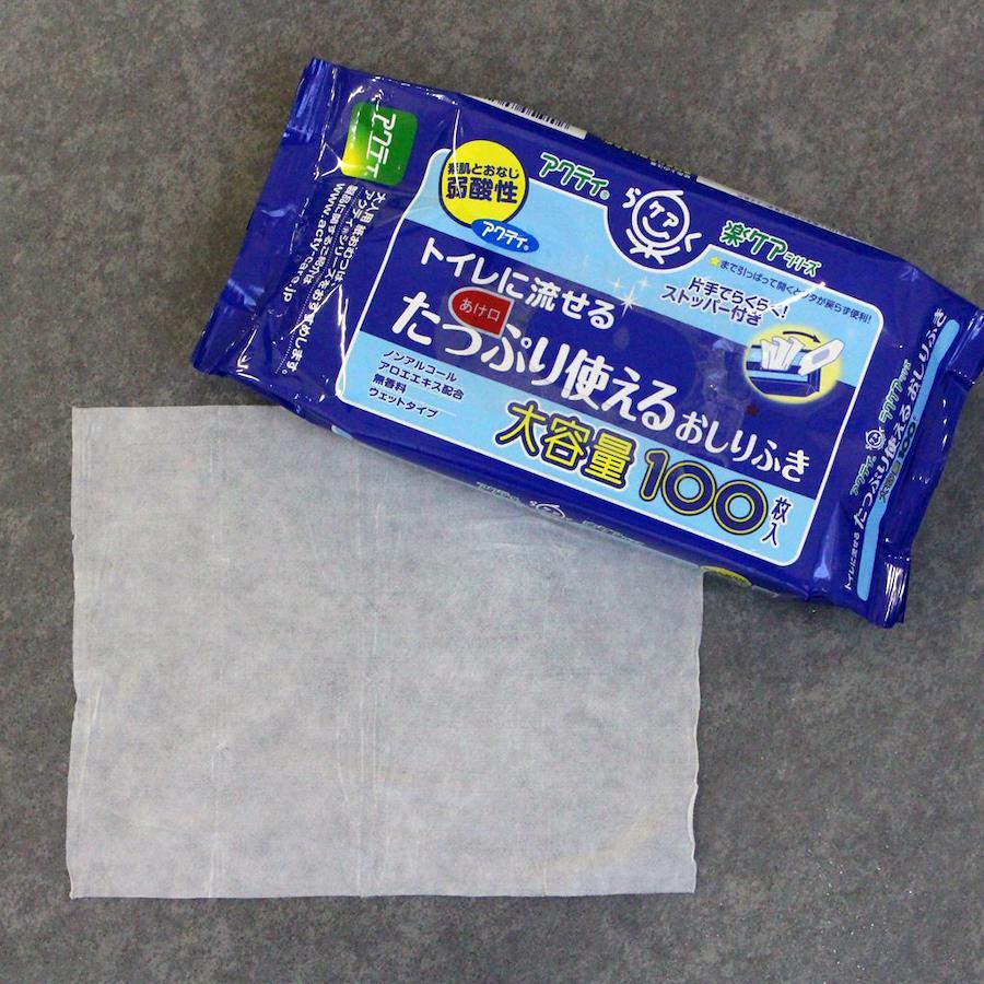 〇商品仕様アクティトイレに流せるおしりふき100枚×24点セット単品サイズ185×50×110(mm)容量100枚(出典:日本製紙クレシア(NIPPON PAPER CRECIA))