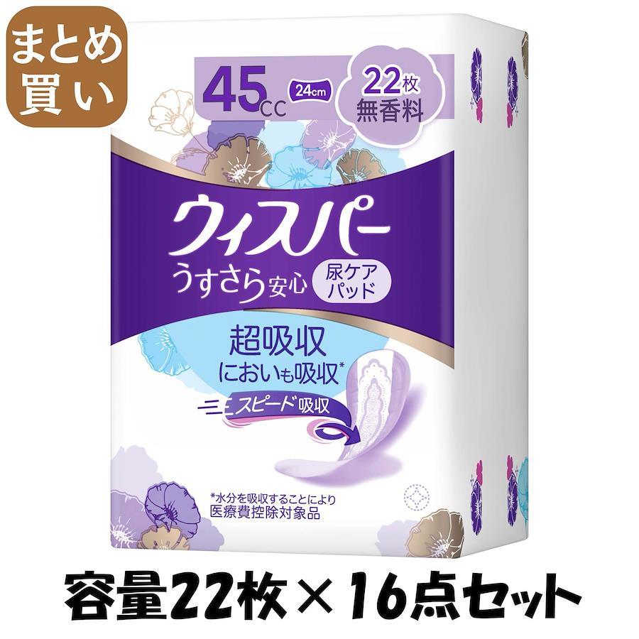 〇商品仕様ウィスパーうすさら安心45CC無香料22枚×16点セット単品サイズ399×203×319(mm) 容量22マイ(出典:P&G)