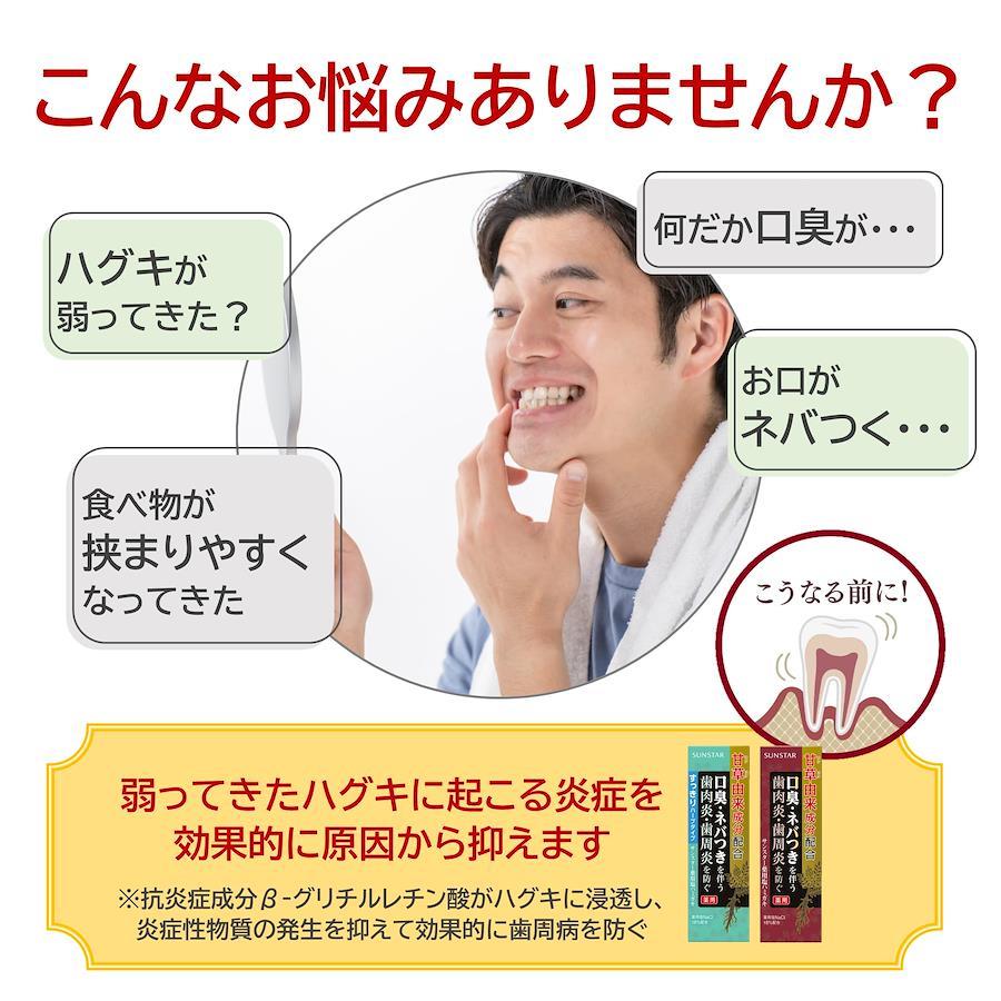 甘草由来成分配合。口臭やネバつきを伴う歯肉炎・歯周炎を予防する歯磨き粉。原産国:日本内容量:85g