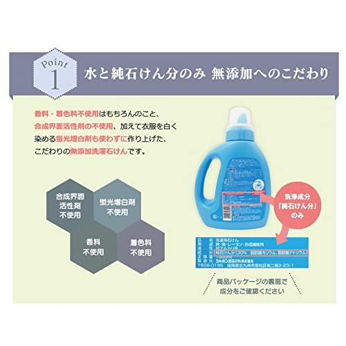 蛍光増白剤・香料・着色料・酸化防止剤・LASなどの合成界面活性剤を使用していない無添加の液体洗濯石けんです。天然油脂を釜炊き製法(ケン化法)で熟練の石けん職人がじっくり炊き上げたました。ふんわりやわらかく洗い上がるので、柔軟剤は不要。全自動洗濯機、ドラム式洗濯機どちらでもご使用いただけます。排水された石けんは短期間のうちに分解される、環境にやさしい無添加石けんです。皮膚アレルギーテスト済み/皮膚刺激テスト済み(全ての方にアレルギーや刺激が起こらないということではありません)原産国 :日本容量 :5L成分 : 純石けん分(30% 脂肪酸カリウム、脂肪酸ナトリウム)商品サイズ (幅×奥行×高さ) :幅190*奥行110*高さ300(mm)
