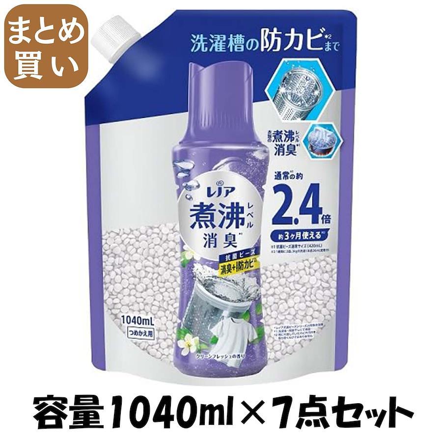 〇商品仕様レノア抗菌ビーズクリーンフレッシュ特大1040M×7点セット単品サイズ280×312×198(mm) 容量1040ML(出典:P&G)