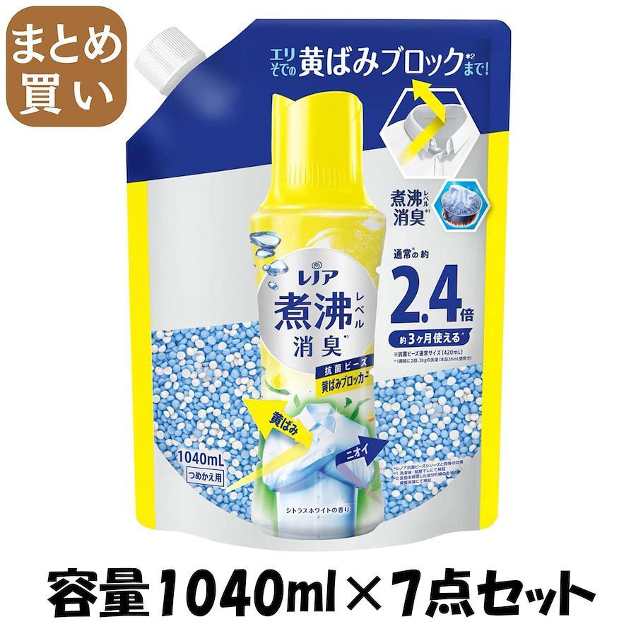 〇商品仕様レノア抗菌ビーズシトラスホワイト特大1040ML×7点セット単品サイズ280×312×198(mm) 容量1040ML(出典:P&G)