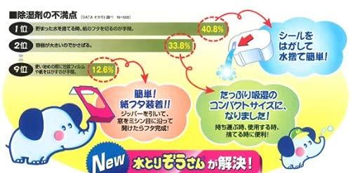 〇商品説明気になる湿気を強力除湿。大きなプラスチック容器に入った薬剤がたっぷり湿気を吸湿します。使用後は、「水捨てシール」を剥がすだけで簡単に溜まった水溶液を捨てることができます。吸湿量/550ml(1個あたり)。大容量タイプ。
